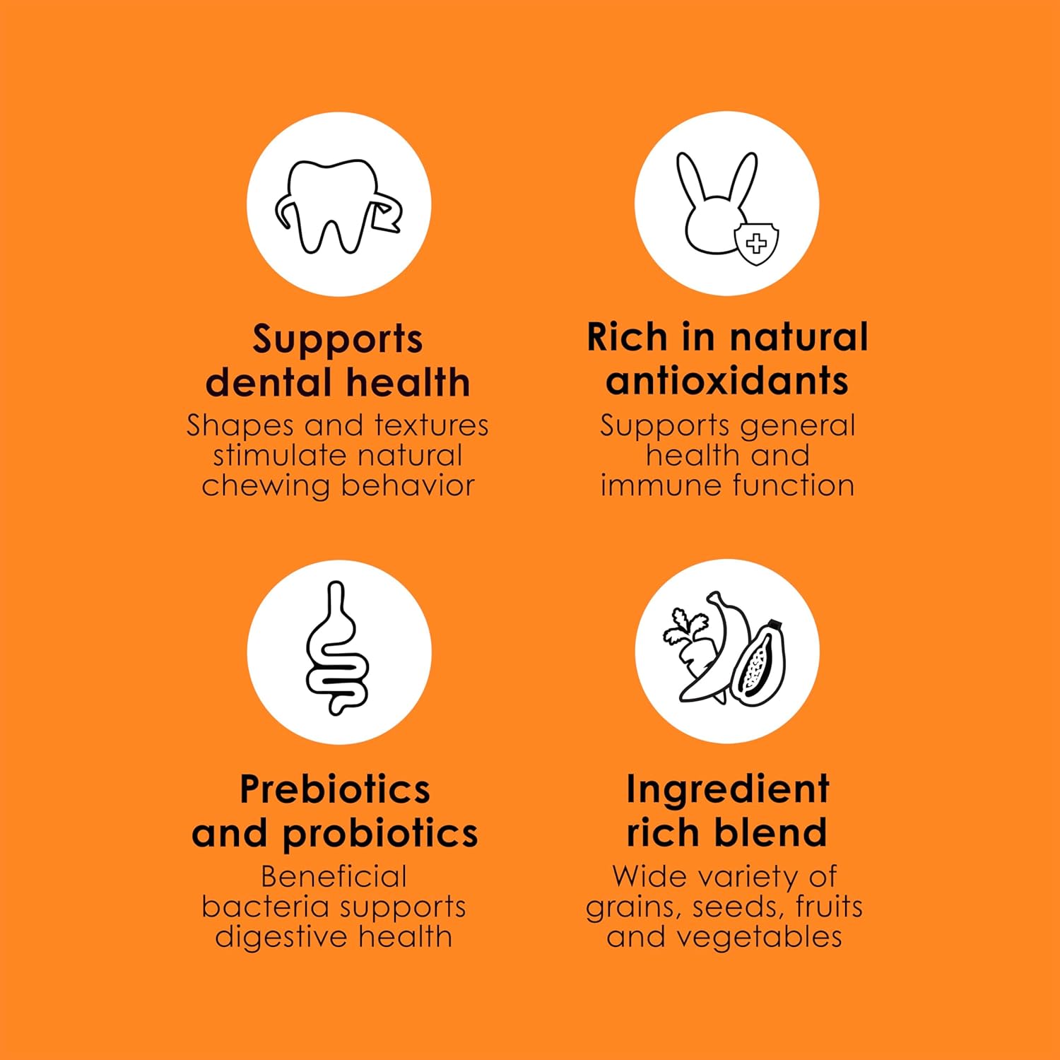 - SUPPORTS DENTAL HEALTH with a variety of shapes and textures, encouraging chewing activity
