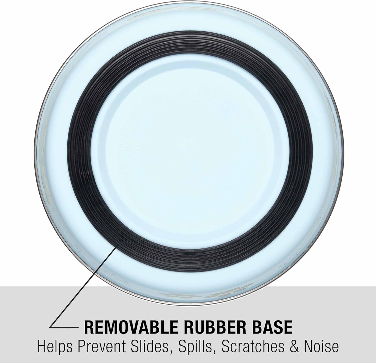 - Removable soy-based rubber ring prevents spills and reduces noise
