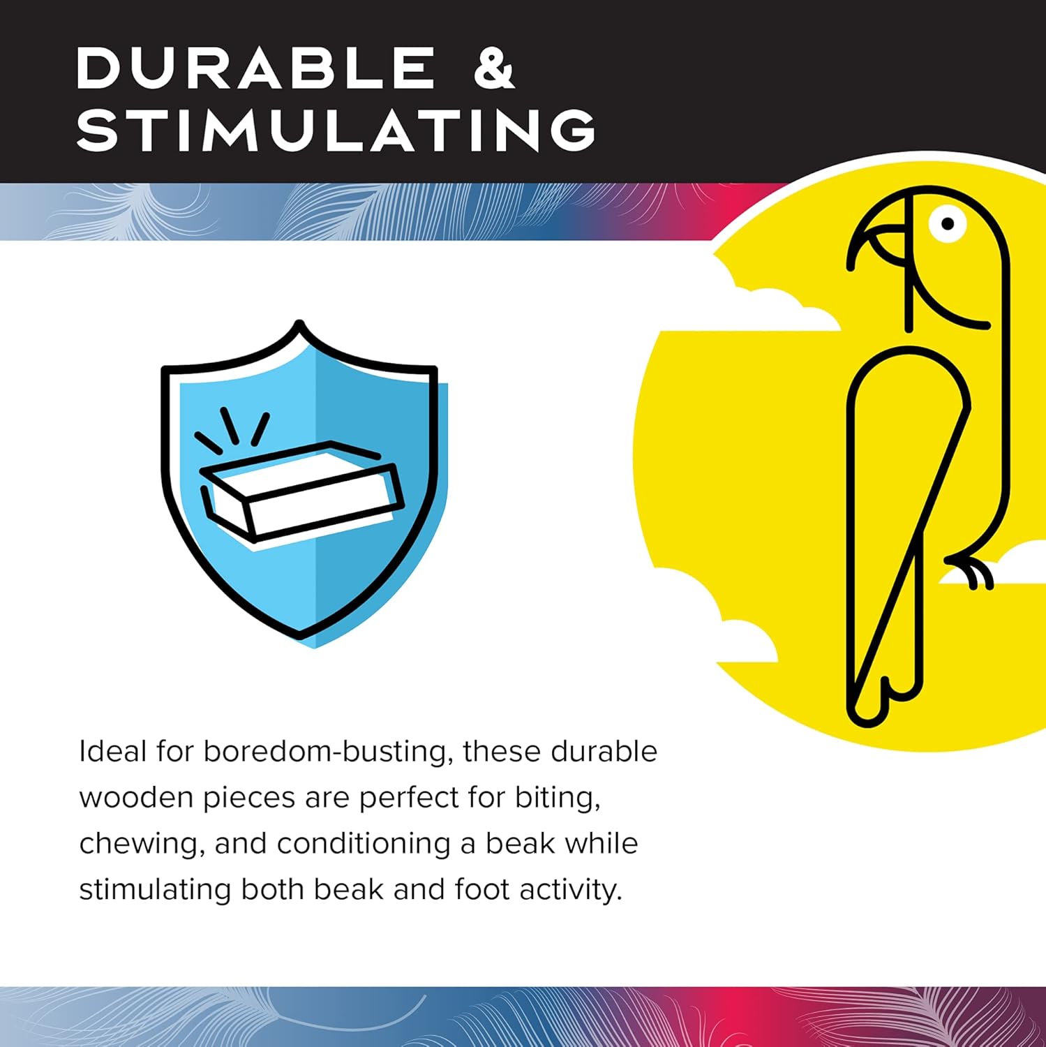 - SAFE FOR BIRDS: The wood pieces are dyed using natural food dyes, so your feathered friend can play it safe while having fun!