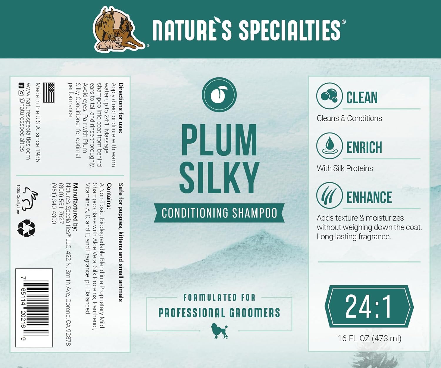 Nature's Specialties Plum Silky Ultra Concentrated Dog Shampoo Conditioner, Makes up to 3 Gallons, Natural Choice for Professional Pet Groomers, Silk Proteins, Made in USA, 16oz