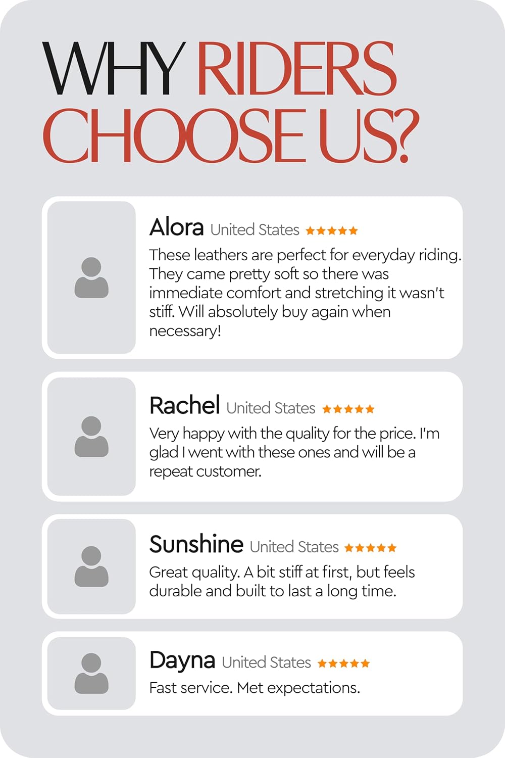- ✅ Easy To Put On: Simple, belt-like functionality so you can get these leathers on and off in a hurry!