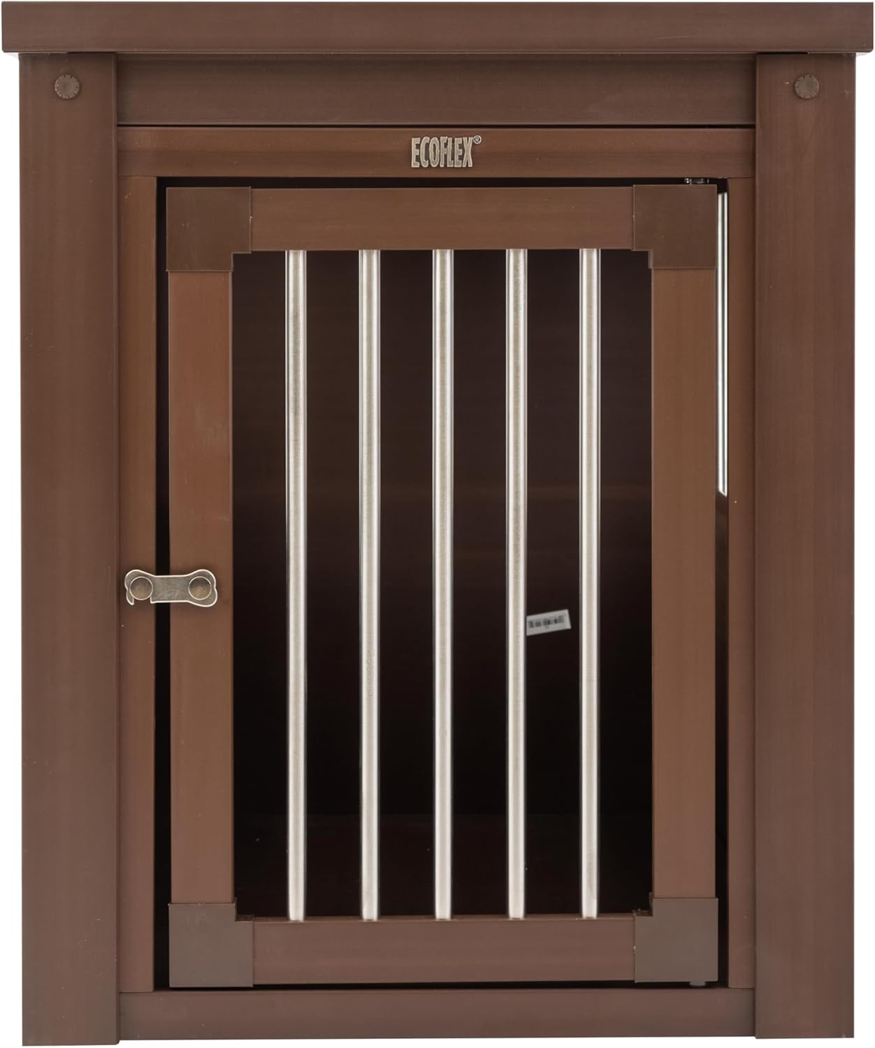 New Age Pet ECOFLEX Dog Crate End Table - Furniture-Style Pet Crate for Crate Trained Dogs - Stainless Steel Tubing & a Latched Closure - 10 Year Manufacturer's Warranty, Medium, Brown