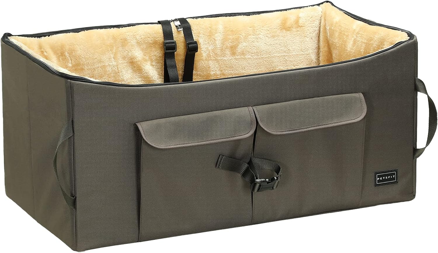 Petsfit Dog Booster Seat For 2 Small Dogs or Medium Dog up to 45 lb, Large Dog Car Seat With 2 Big Pockets for Cars, Trucks and SUVs (Large, Dark Brown)