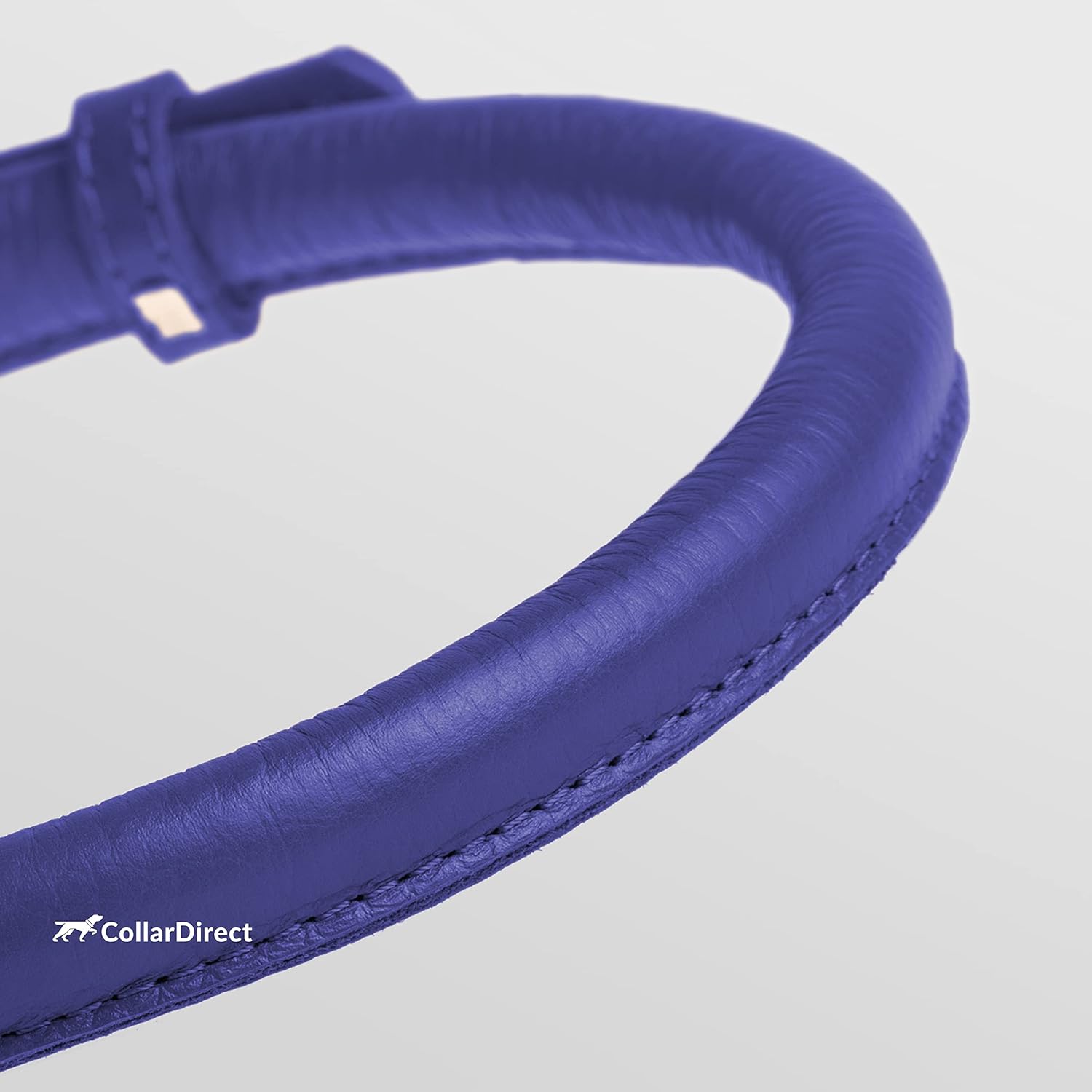 CollarDirect Rolled Leather Dog Collar, Soft Padded Round Puppy Collar, Handmade Genuine Leather Collar Dog Small Large Cat Collars 13 Colors (11-14 Inch, Purple Textured)