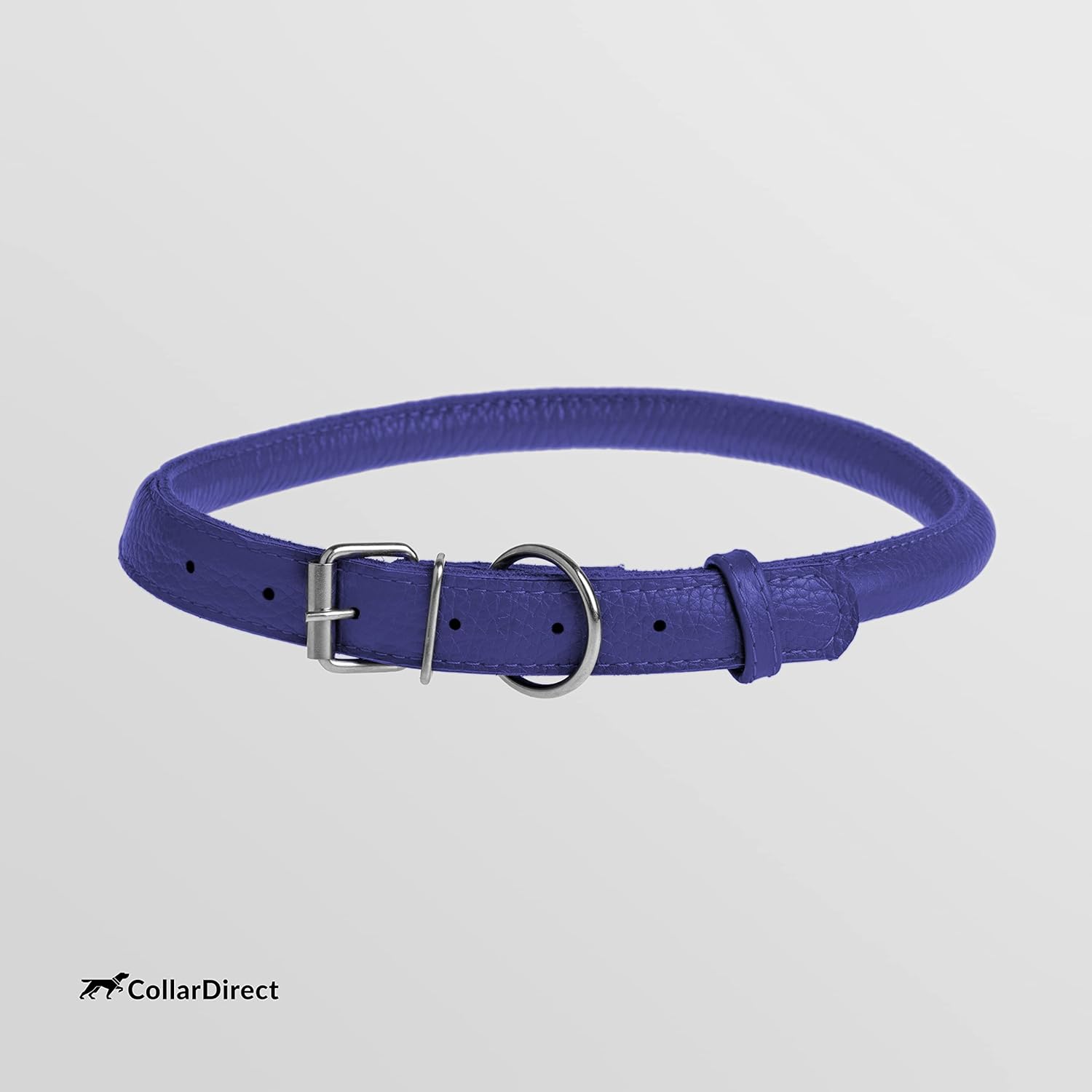 CollarDirect Rolled Leather Dog Collar, Soft Padded Round Puppy Collar, Handmade Genuine Leather Collar Dog Small Large Cat Collars 13 Colors (13-16 Inch, Purple Textured)