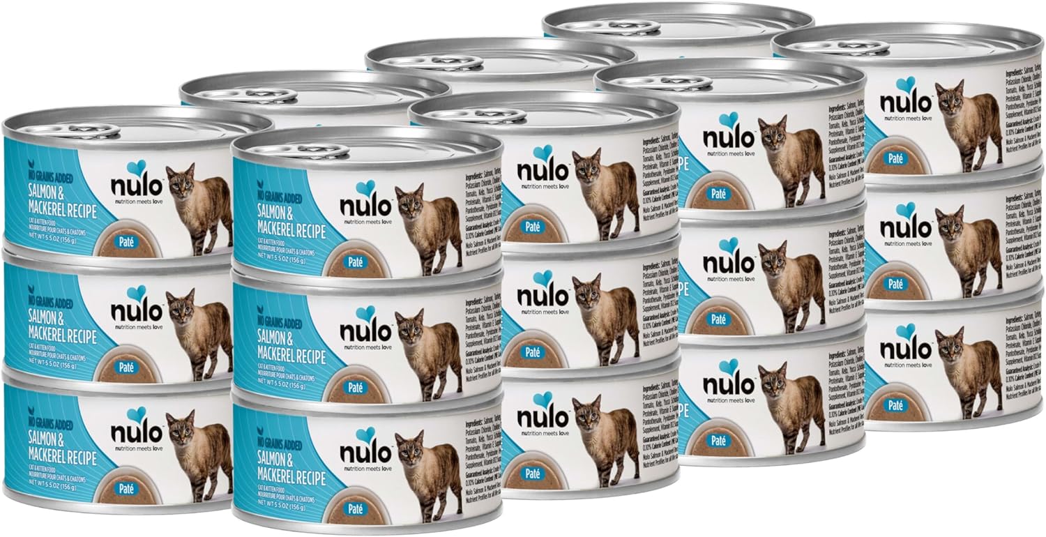 - SALMON & MACKEREL RECIPE - Nulo Freestyle Cat & Kitten Wet Pate Canned Cat Food features our proprietary blend of grain-free proteins and vitamins ideal for cats with diagnosed grain allergies and sensitivities. Pack of 24, 5.5 Oz each