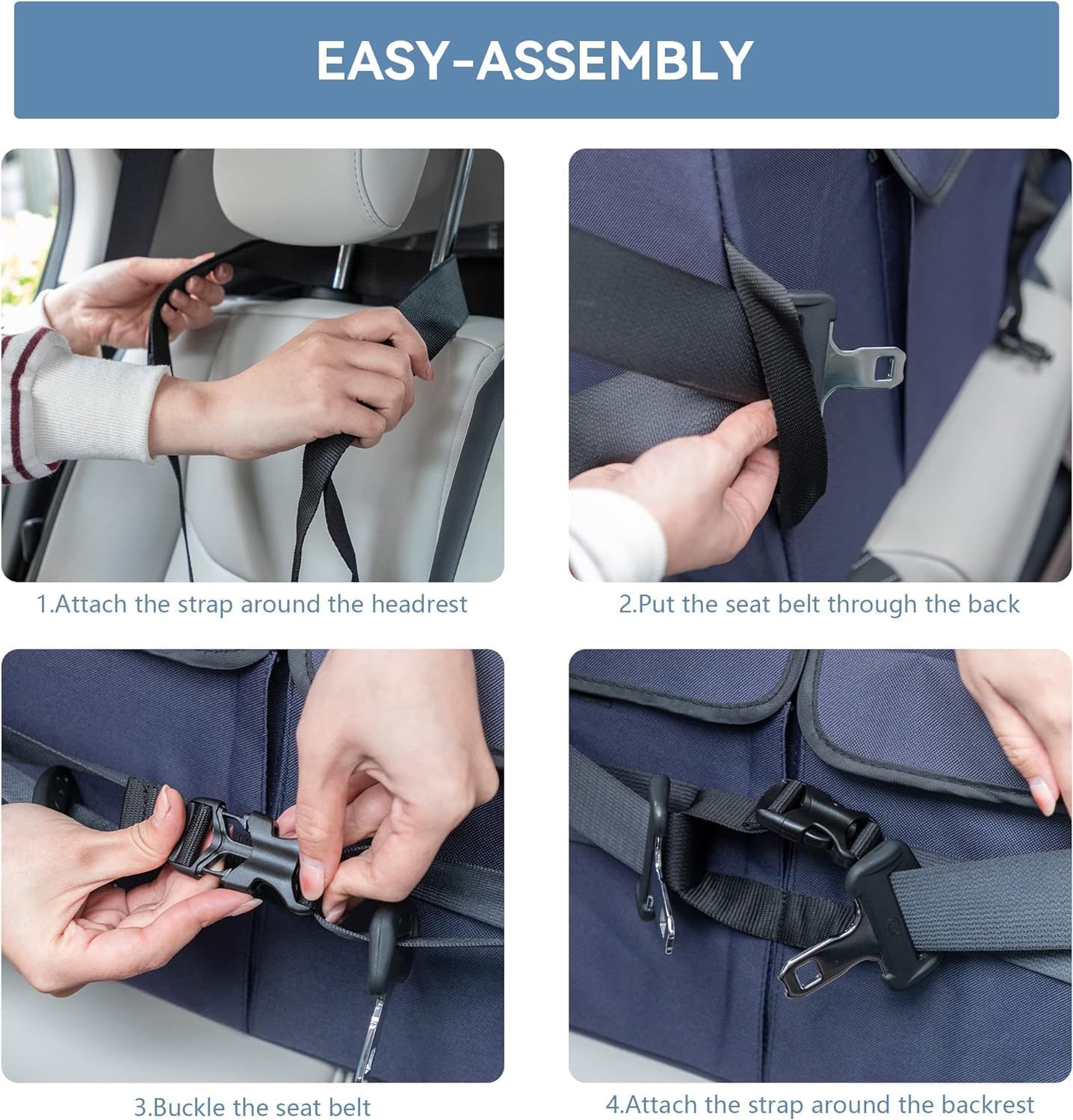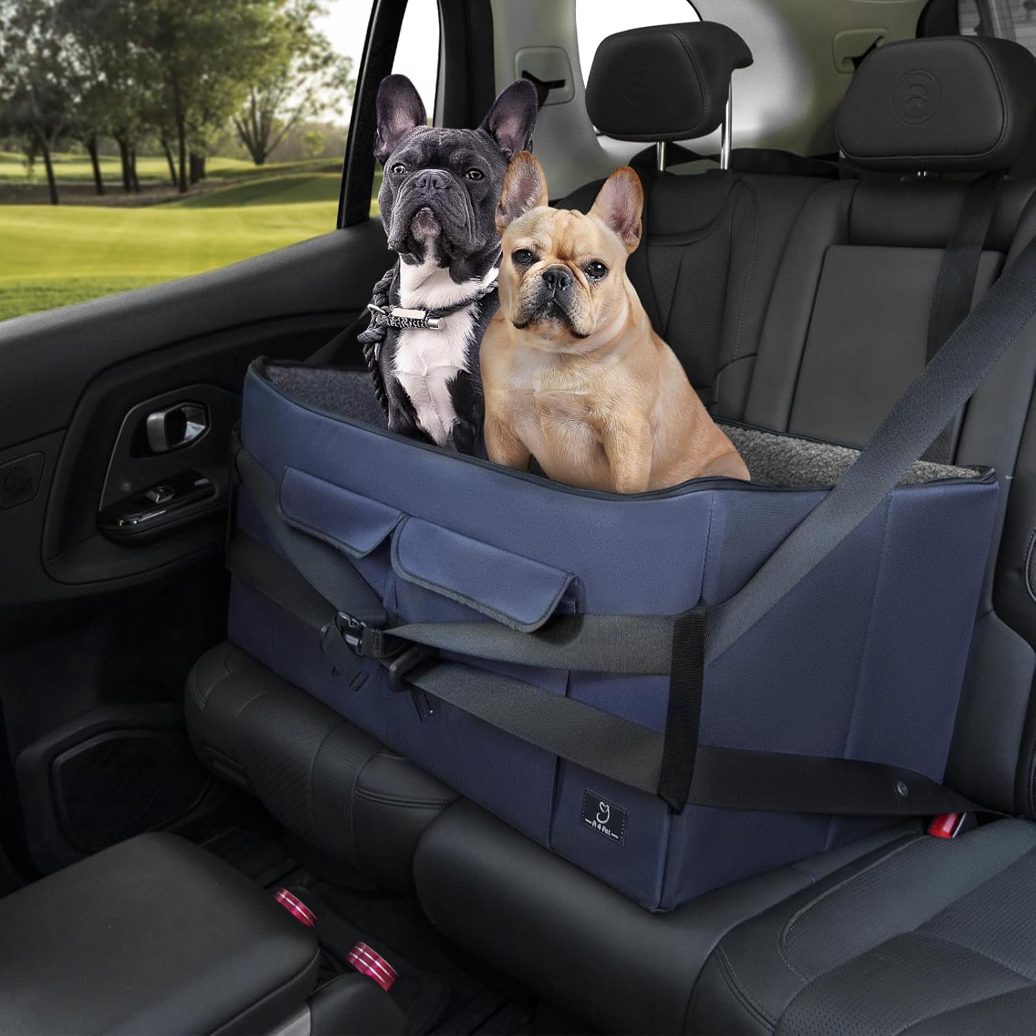 - Maximum Safety for Stress-Free Travel:Includes 2 adjustable safety leashes that buckle to headrests & seat belts, plus collar tethers to keep your dog secure. The non-slip base ensures stability in this large pet car seat.