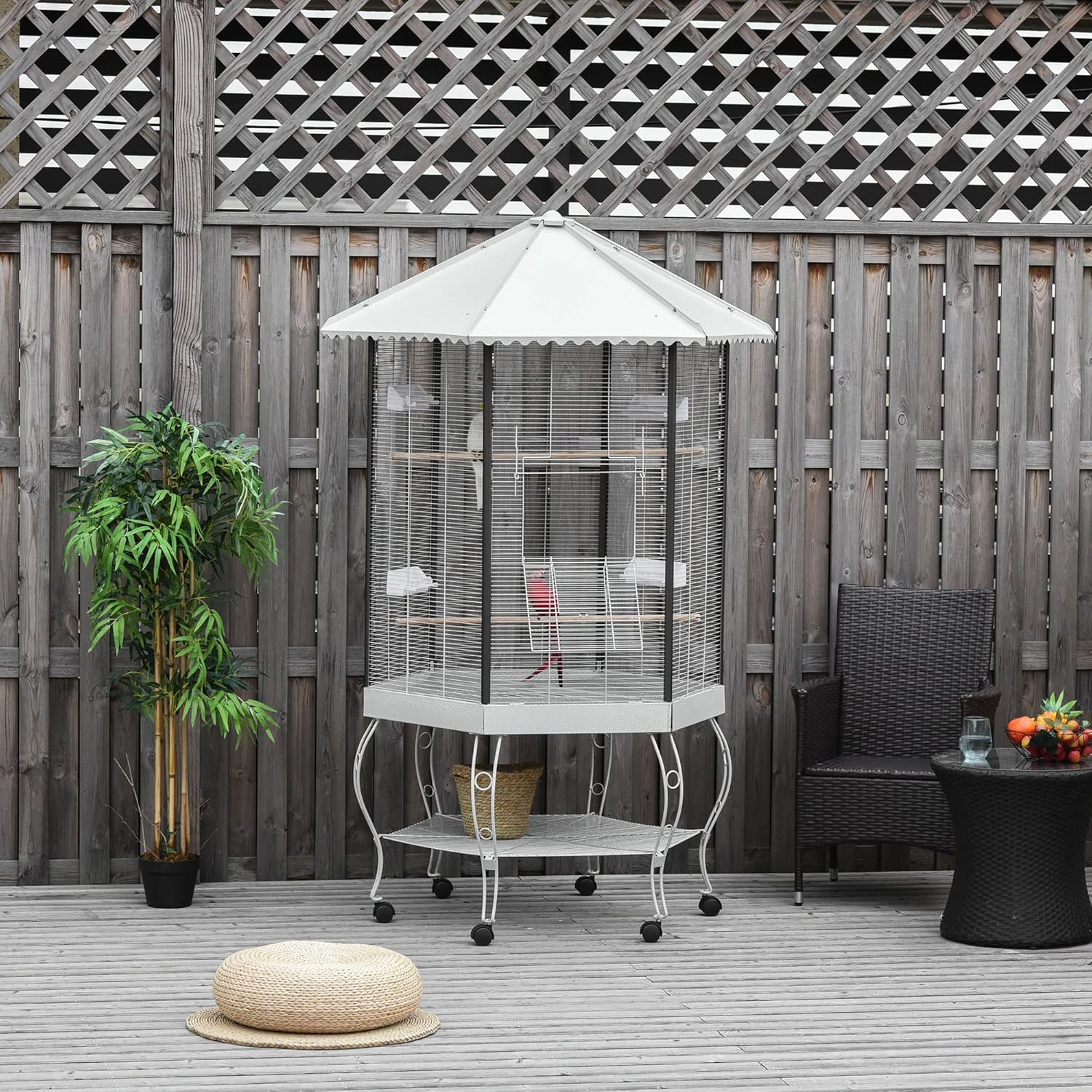 - Portable Design: A metal stand with 6 easy-rolling casters lets you enjoy your bird anywhere you go.