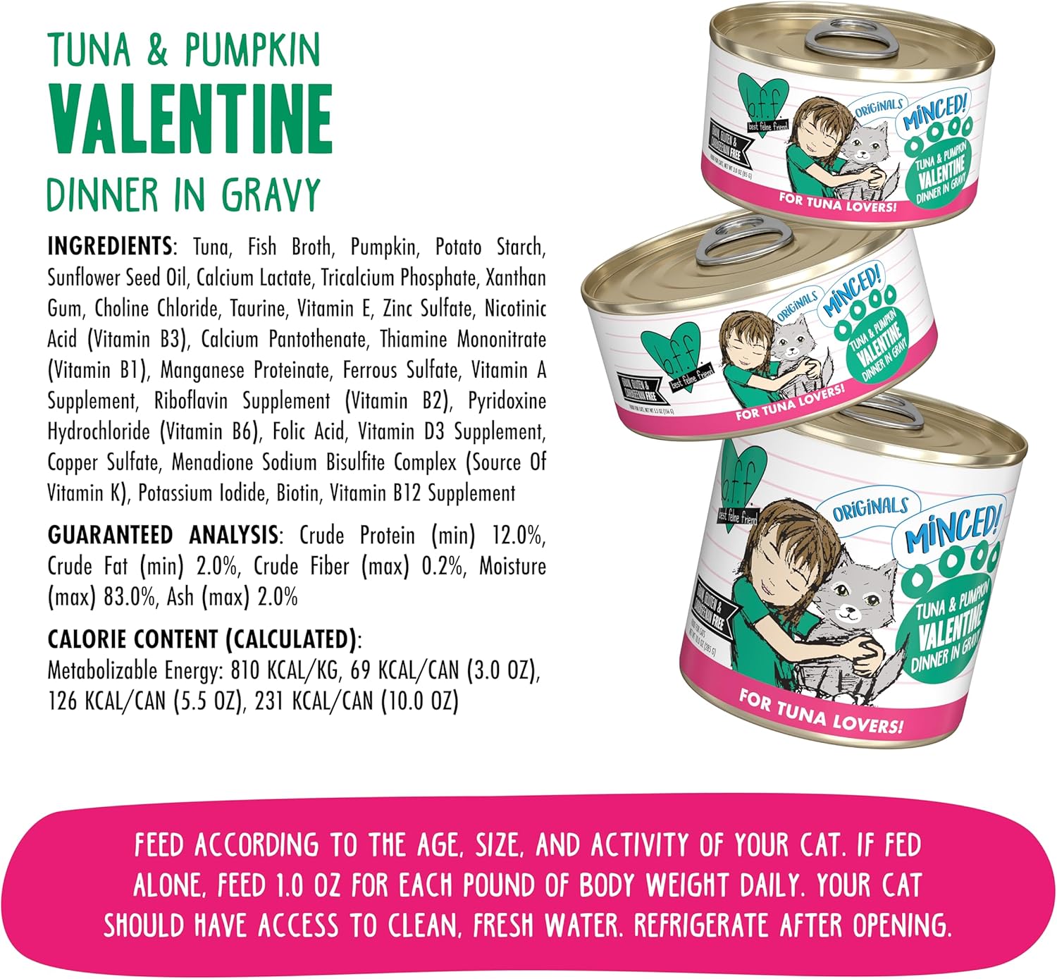 Weruva BFF Minced Natural Wet Cat Food, Tuna and Pumpkin Valentine in Gravy, 3oz Can, Pack of 24