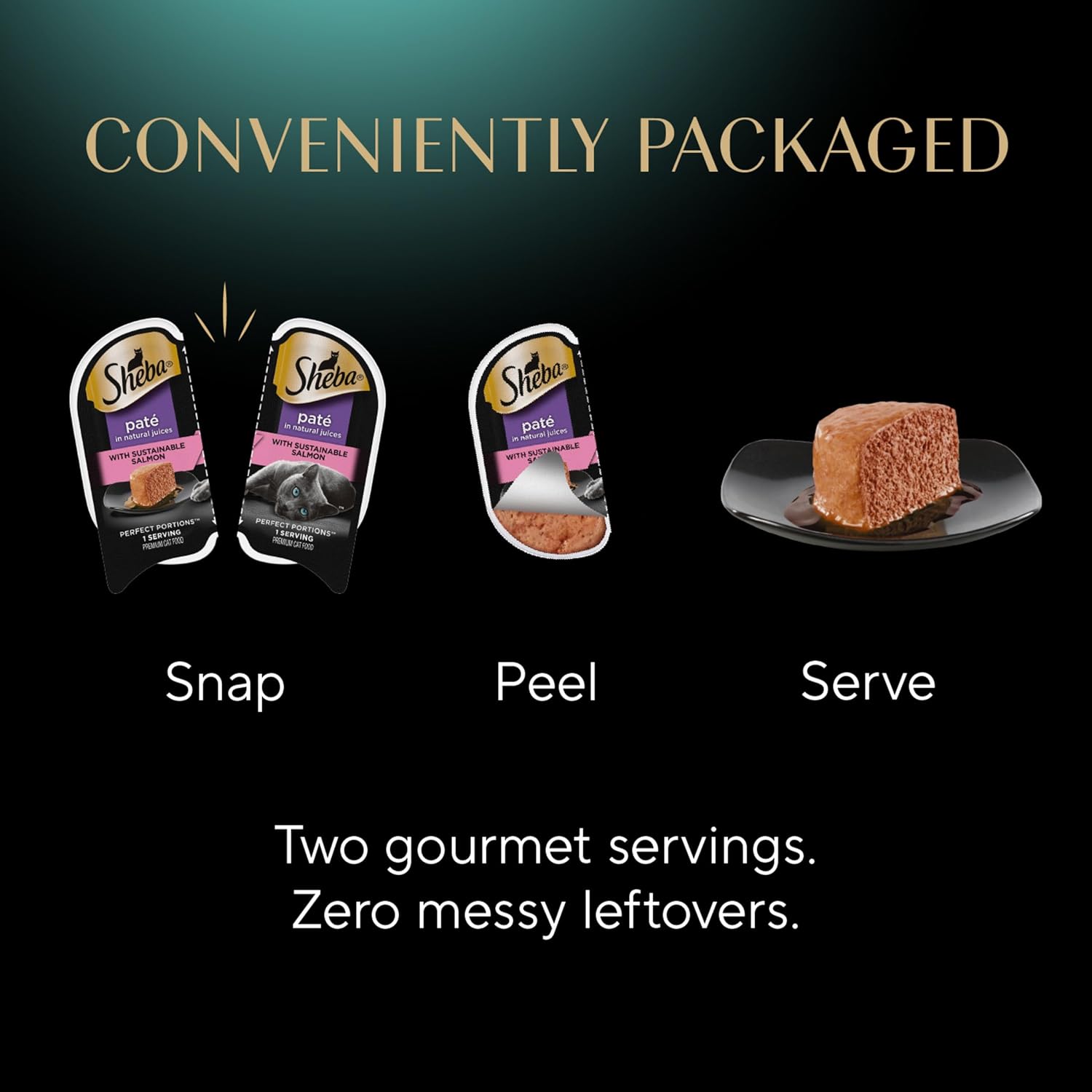 - A Fresh Meal With Every Peel: Just snap, peel, and serve Sheba Perfect Portions Wet Cat Food