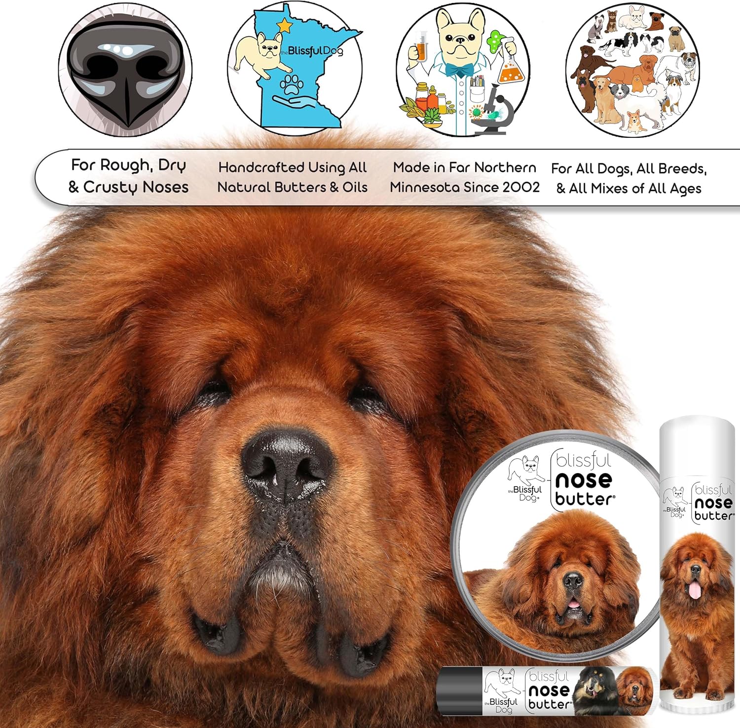 The Blissful Dog Tibetan Mastiff Nose Butter for Dry, Cracked Skin, Lick-Safe Dog Nose Balm with Moisturizing Shea Butter, Almond, Olive, and Essential Oils, Pet Supplies, Uncented, 0.50 oz.