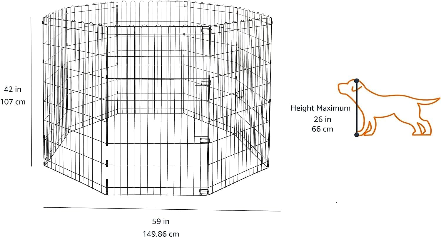 Amazon Basics Foldable Octagonal Metal Exercise Dog Playpen - Indoor/Outdoor, No Door, Large (8 Panels, 24 x 42), Easy to assemble, store, and customize, 42" - Large, Black