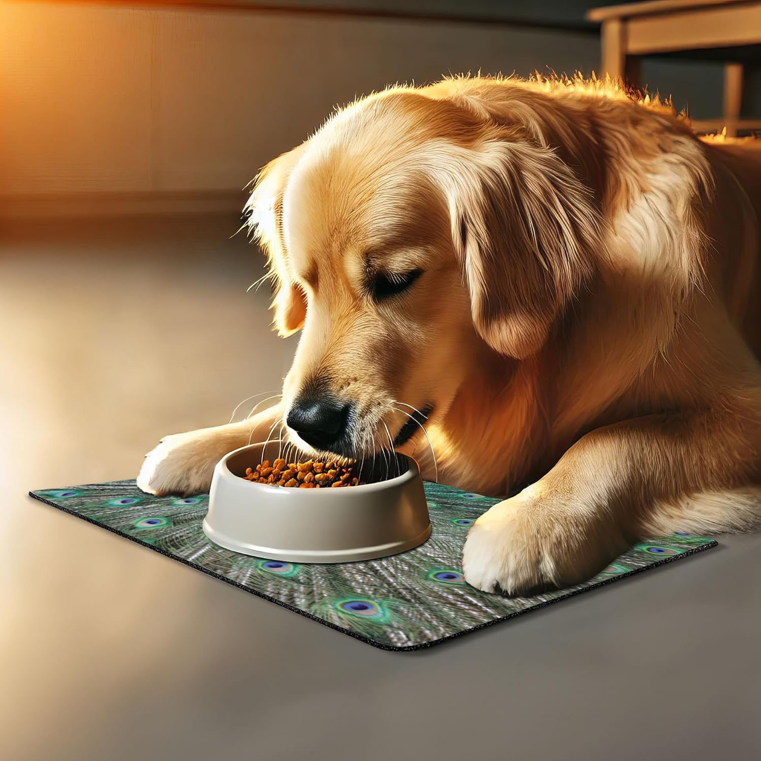 - Features - Fun prints and long-lasting colors. Find any theme and color you want to match your room decor or your pet’s personality. This pet feeding mat can even feature your cat's or dog’s favorite item or design, adding a cheerful touch to your pet’s feeding area.