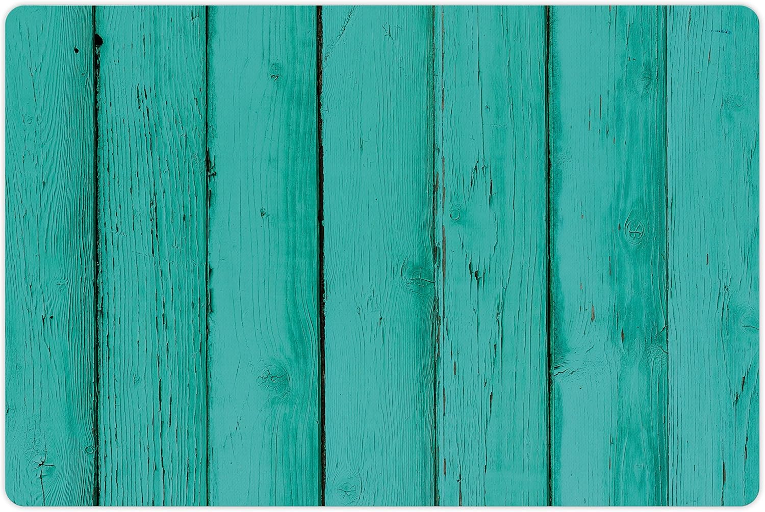 Lunarable Mint Pet Mat for Food and Water, Old Wood Rustic Oak Plank Background with Vertical Striped Vivid Woods Farm Barn Image, Non-Slip Rubber Mat for Dogs and Cats, 18" X 12", Green