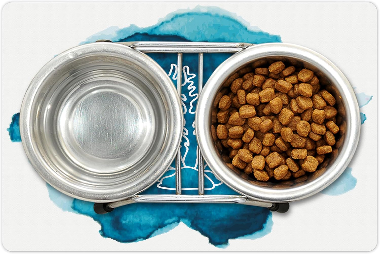 Lunarable Aquarium Pet Mat for Food and Water, Watercolor Stain Dot with Coral Sea Inspired Design, Non-Slip Rubber Mat for Dogs and Cats, 18" X 12", Pale Blue