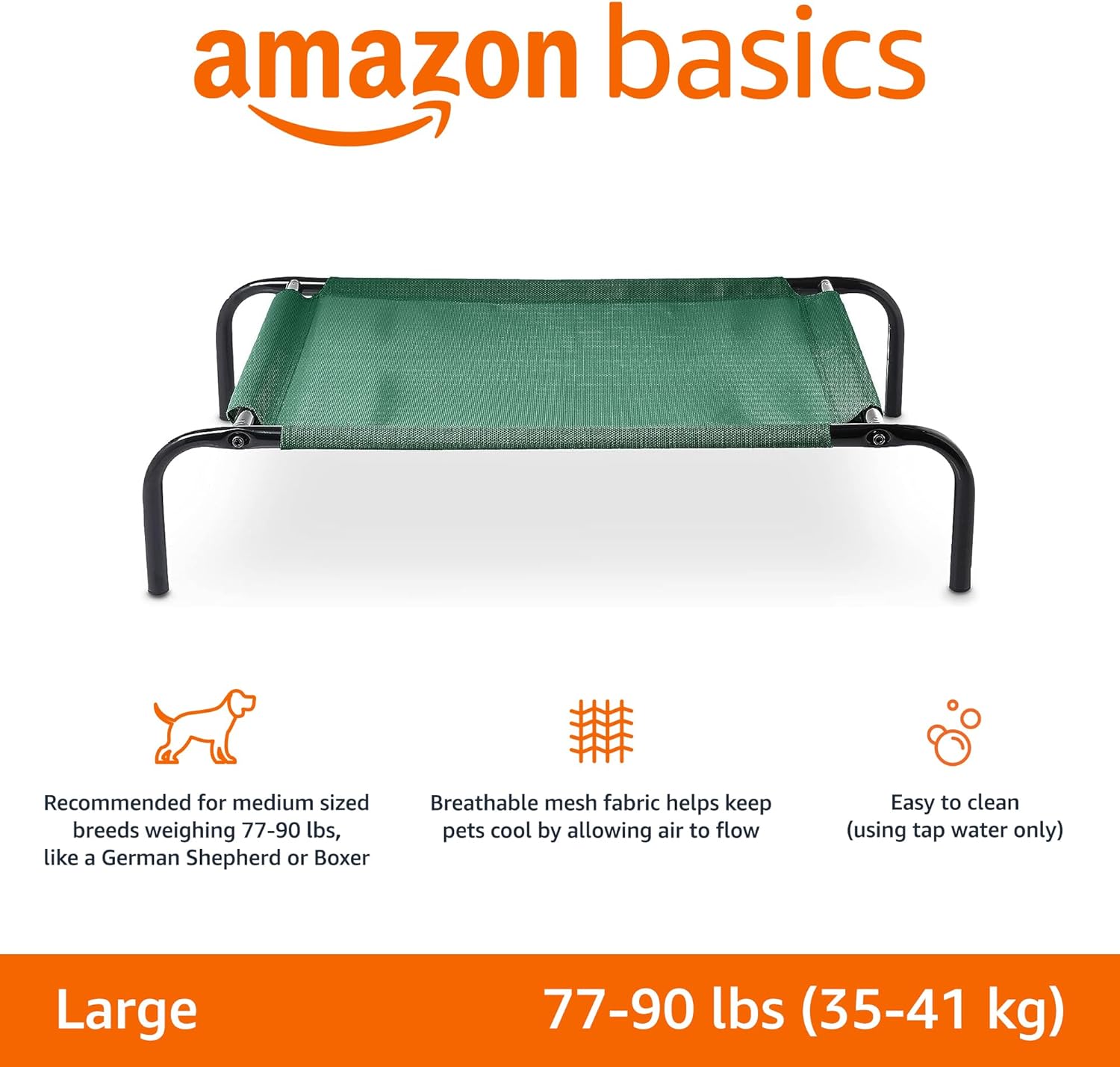 Amazon Basics Cooling Breathable Elevated Dog Bed with Metal Frame for Large Dogs, 51 x 31 x 8 Inch, Green
