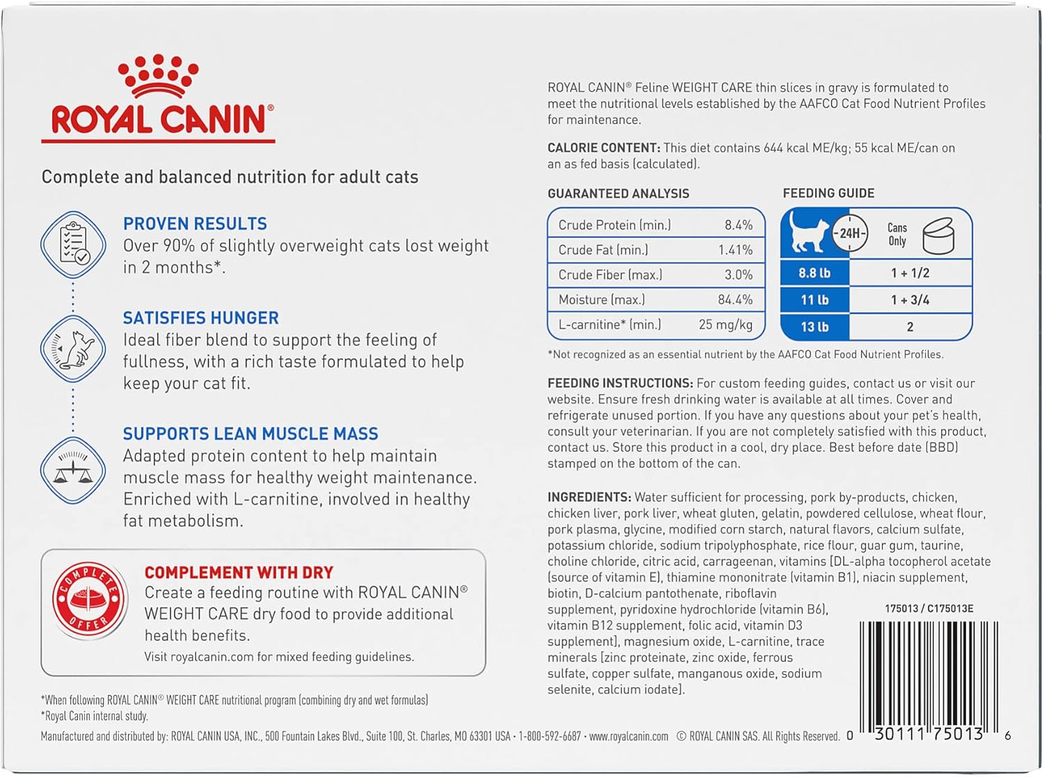 Royal Canin Feline Weight Care Thin Slices in Gravy Canned Adult Wet Cat Food, 3 oz can (12-count)