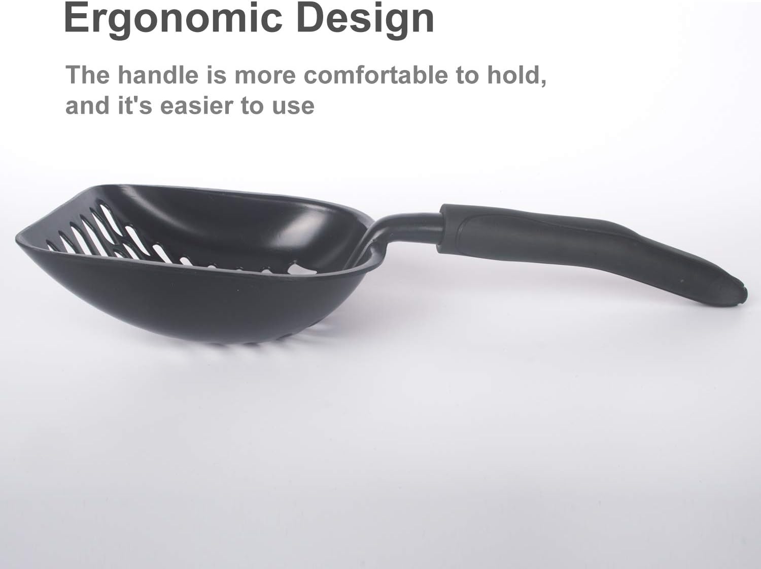 Metal Cat Litter Scoop with a Deep Shovel Design | Solid Aluminum & Non-Stick Coating | Durable Rubber Coated Handle for Easy Scooping | Perfect Size Sifting Slots for Any Type of Kitty Litter