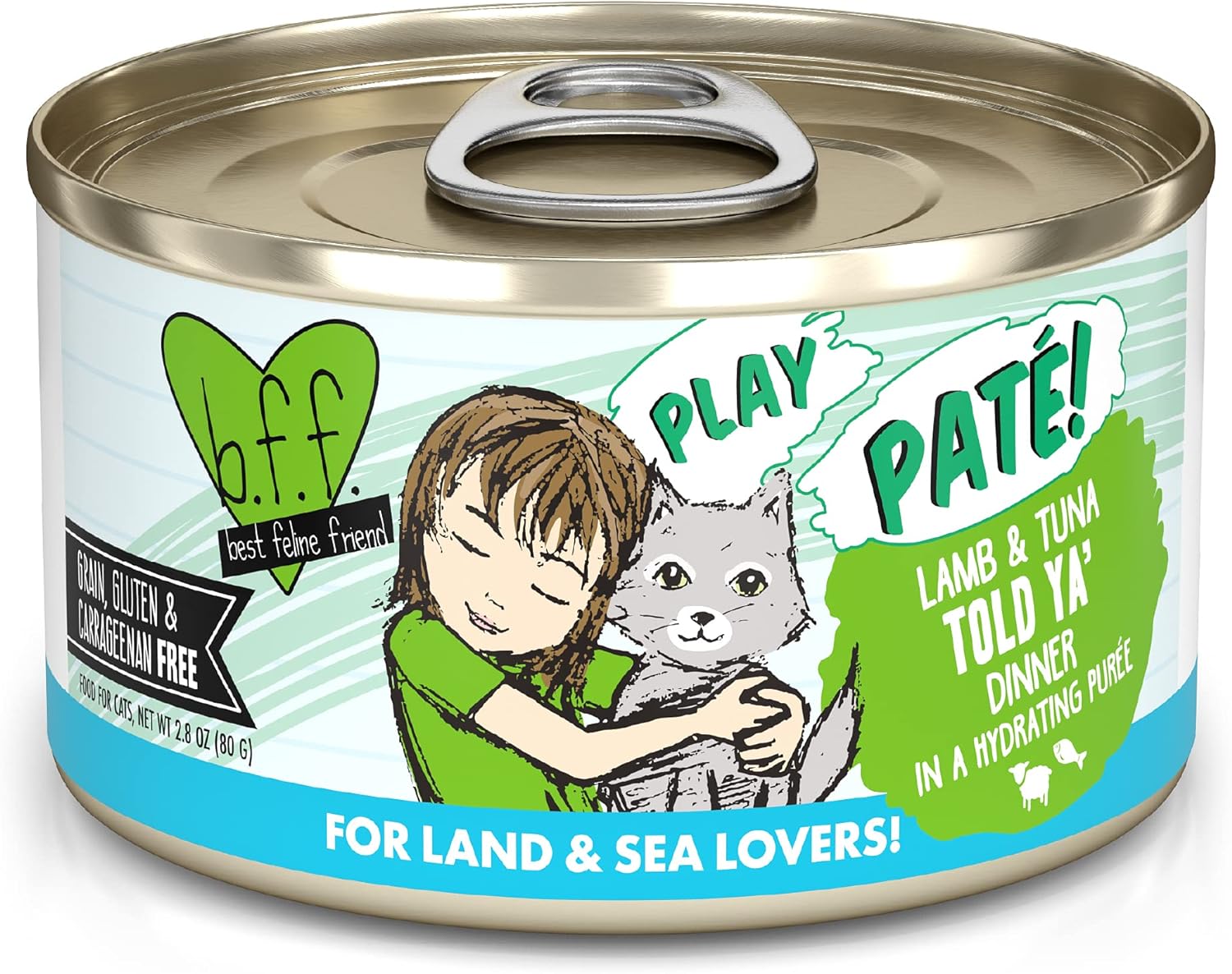 Weruva B.F.F. Play - Best Feline Friend Paté Lovers, Aw Yeah!, Lamb & Tuna Told Ya' with Lamb & Tuna, 2.8oz Can (Pack of 12)