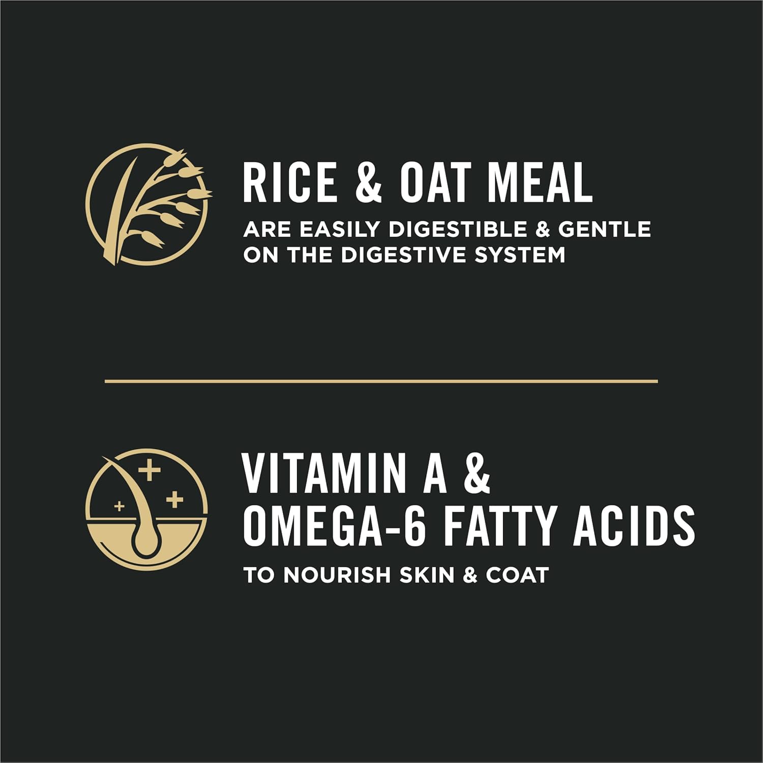 - Omega-6 fatty acids and vitamin A to nourish skin and coat