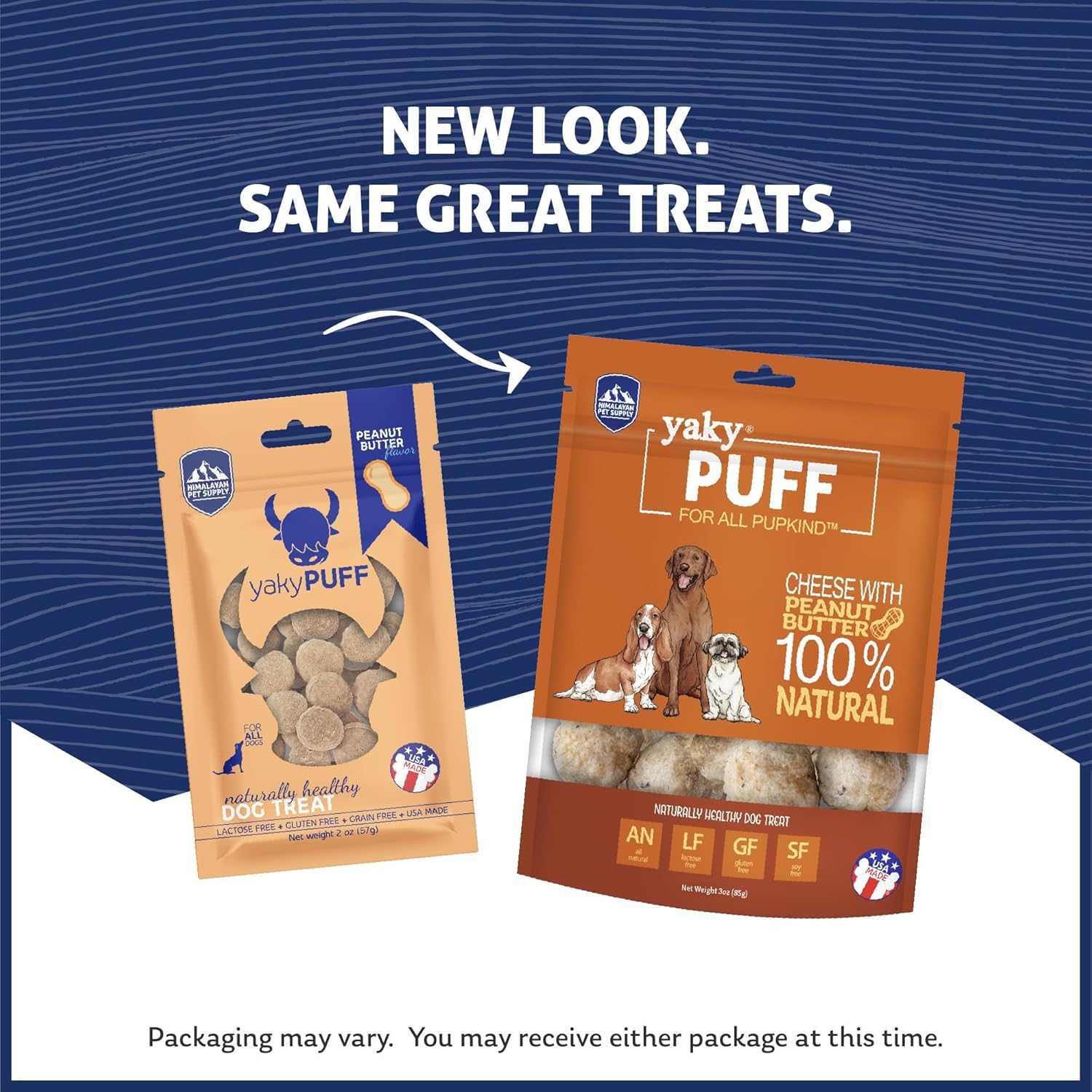 | yakyPUFF Himalayan Cheese Treats | Lactose Free | Gluten Free | Grain Free | USA MADE | For All Breeds | Peanut Butter Flavor Crispy Puffed Treat