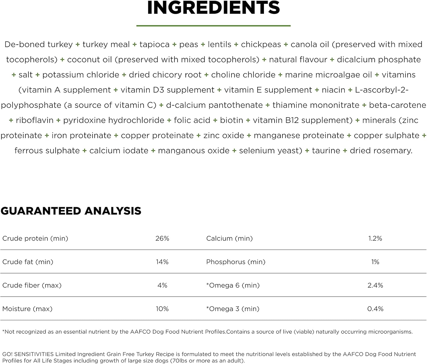 Go! Solutions Sensitivities Limited Ingredients, Grain-Free Dry Dog Food, Turkey Recipe for Sensitive Stomach, 22 lb Bag