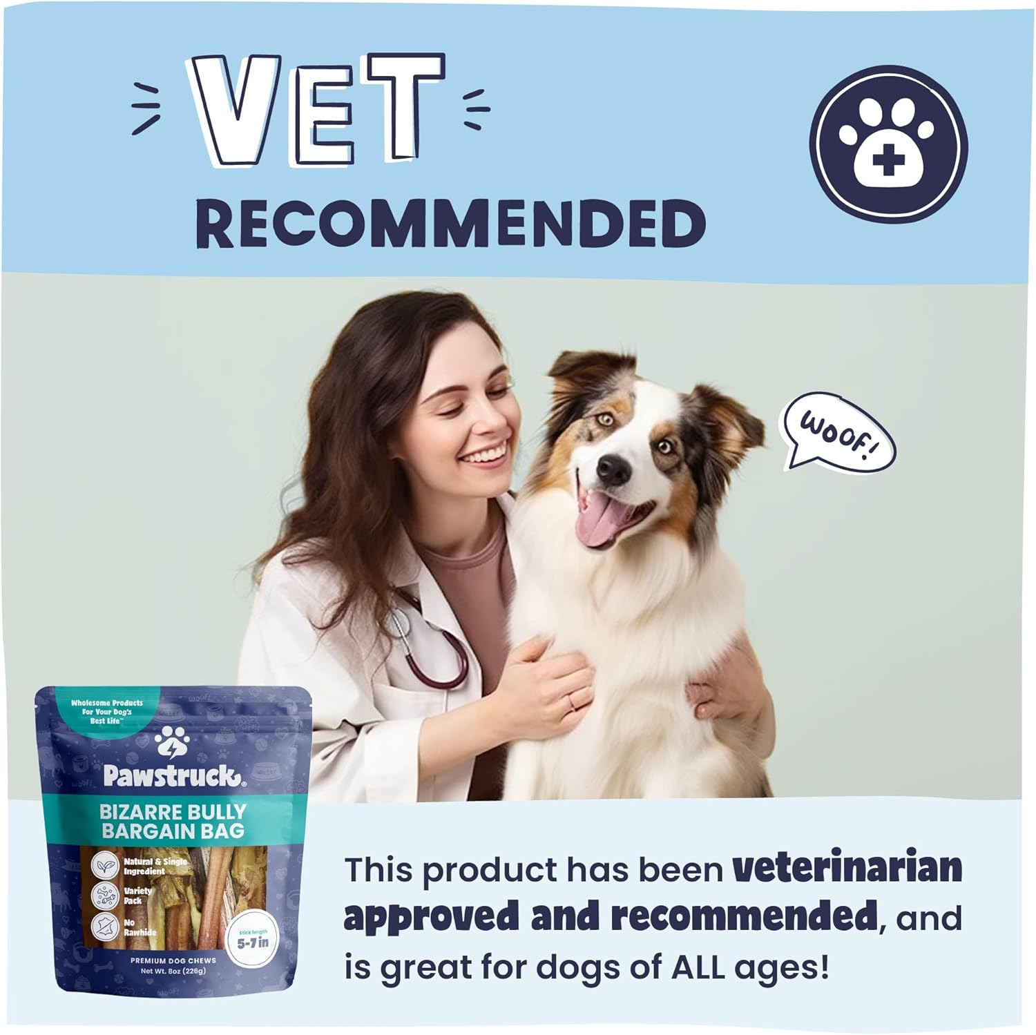 Pawstruck Natural Bizarre Bully Sticks Bargain Bag for Dogs and Puppies – Variety Pack of 5–7" Long-Lasting, Eco-Conscious Beef Chew Treats – 8 oz Bag – Packaging May Vary