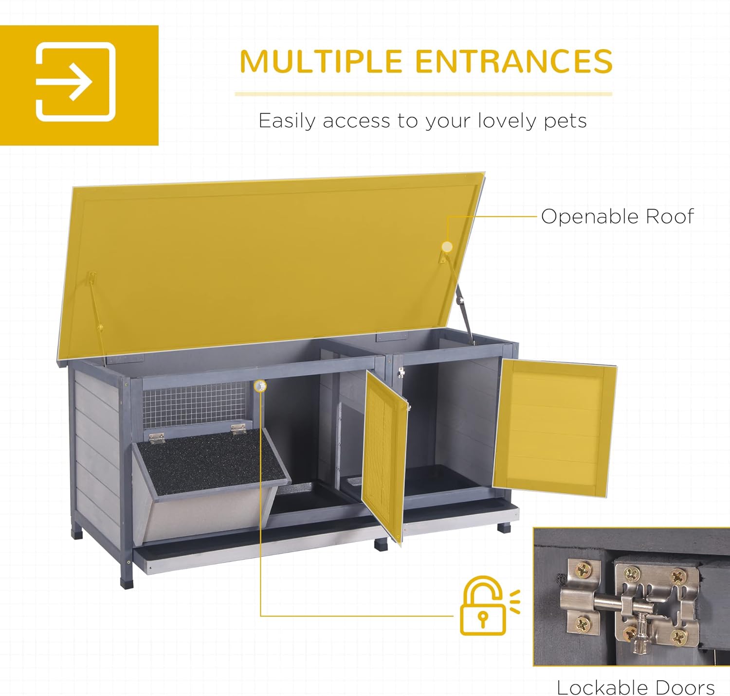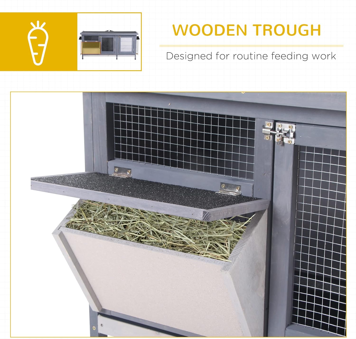 PawHut Wooden Rabbit Hutch Bunny Hutch Cage Guinea Pig with Waterproof Roof, No Leak Tray and Feeding Trough, Indoor/Outdoor, Gray