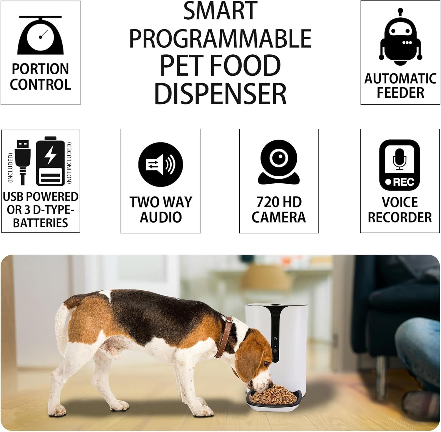 - TWO-WAY COMMUNICATION - Remind your pets of mealtime, keep them company, or calm them with the sound of your voice from a distance using the built-in microphone and speaker. This feature ensures that your pets feel connected and comforted, even when you're away.