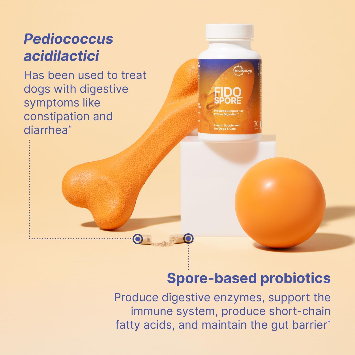 Microbiome Labs Fidospore - Dog Probiotics for Digestive Health & Immune Support - Spore-Forming Pet Probiotics for Dogs & Cats Gut Health - Flavored with Grass Fed Beef Liver (30 Capsules)
