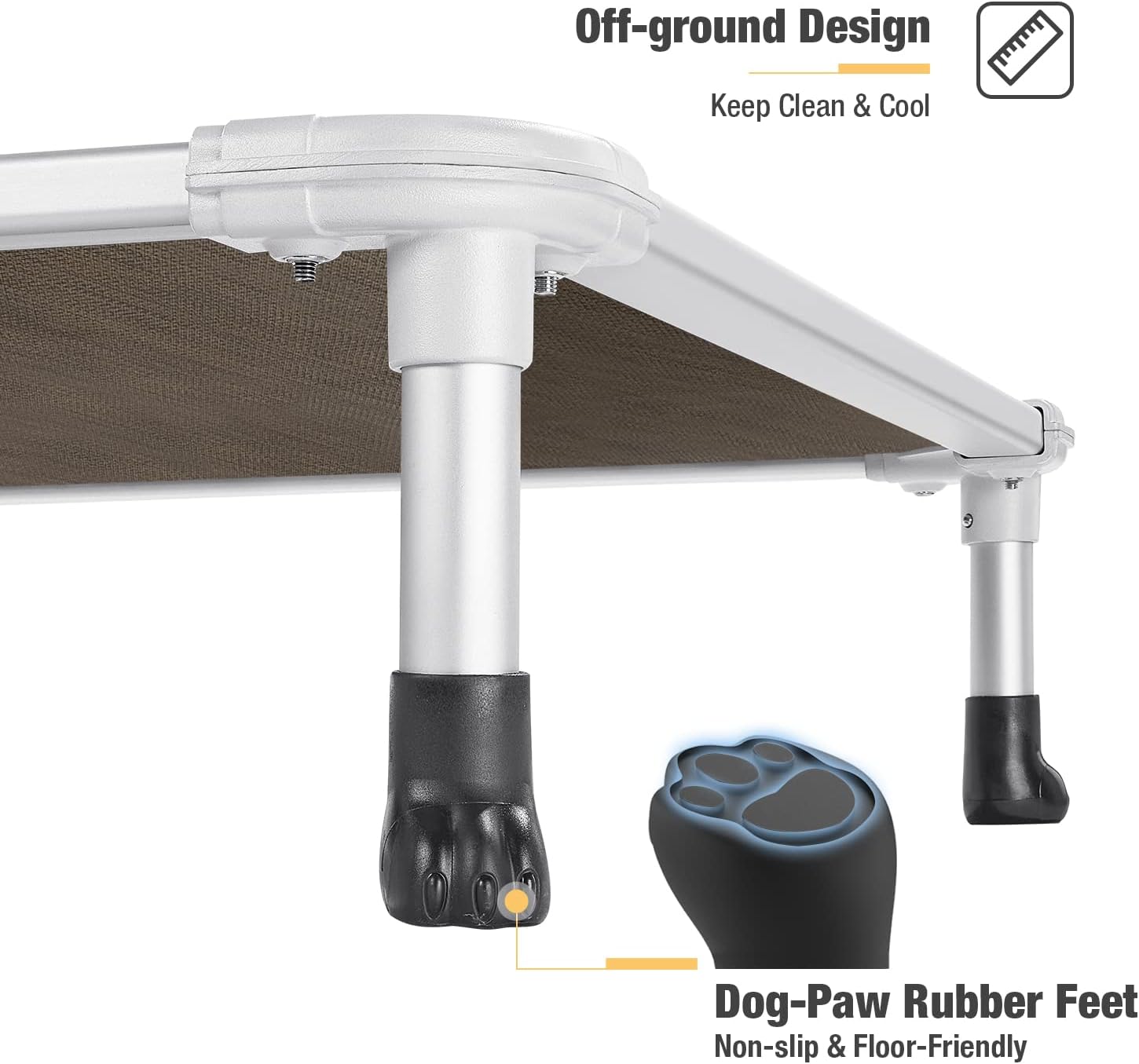Veehoo Chew Proof Elevated Dog Bed - Cooling Raised Pet Cot - Silver Aluminum Frame and Durable Textilene Mesh Fabric, Unique Designed No-Slip Feet for Indoor or Outdoor Use, Brown, Large, CWC2003