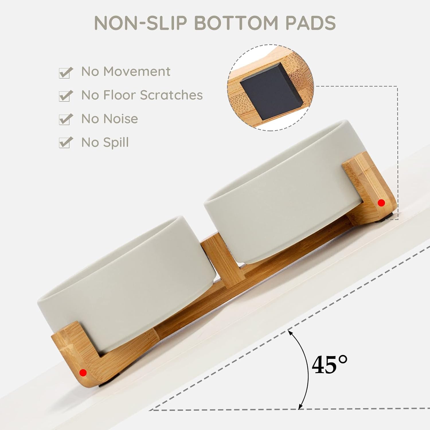 SPUNKYJUNKY Ceramic Dog and Cat Bowl with Wood Stand Non-Slip Matte Glaze Weighted Food Water Set for Cat Medium Dog 28.7 OZ