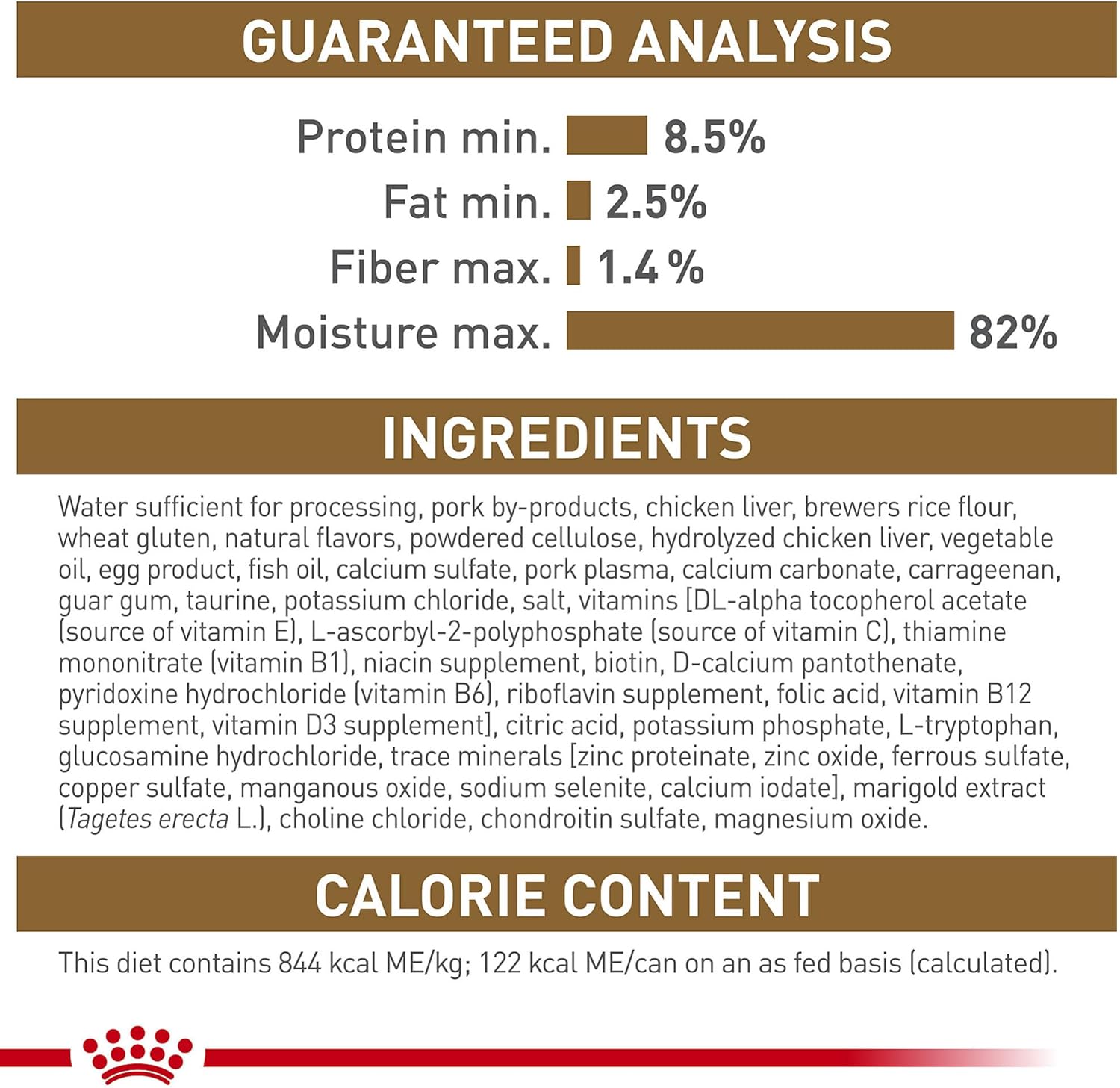 - Royal Canin Feline Health Aging 12+ Loaf in Sauce is wet cat food tailored for senior cats 12 years and older