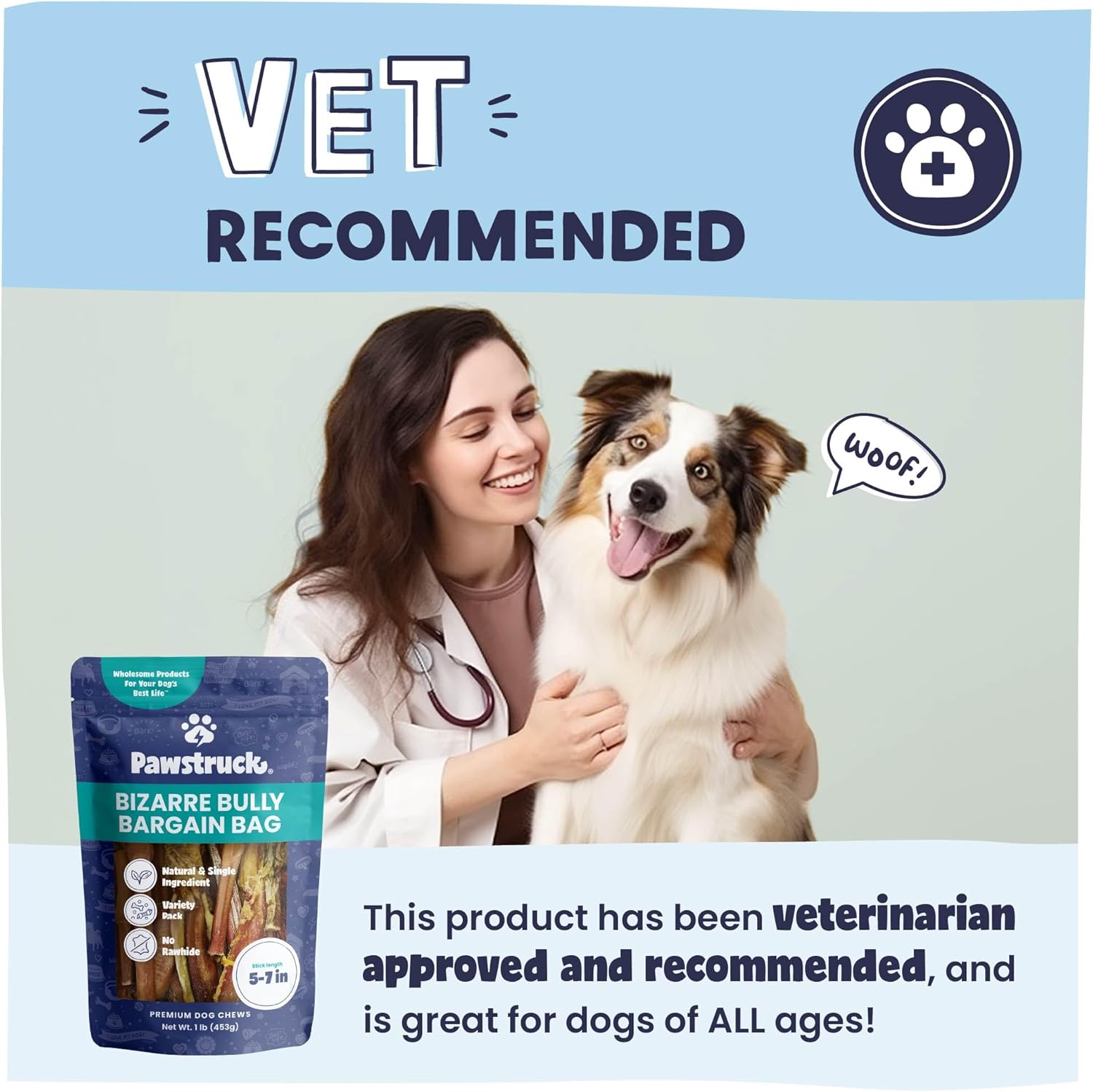 Pawstruck Natural Bizarre Bully Sticks Bargain Bag for Dogs & Puppies - Variety Pack of 8-12" Long Lasting Eco-Conscious Beef Chew Treats - 1 lb. Bag - Packaging May Vary