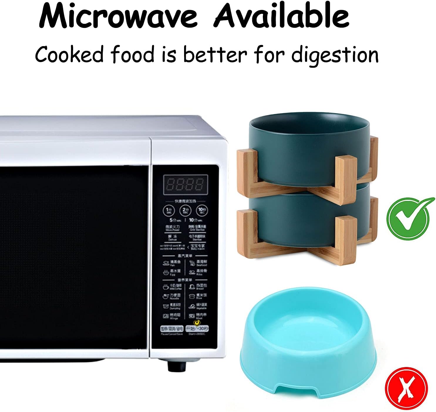 - DISHWASHER MICROWAVE SAFE - Ceramic pet bowls is made of Porcelain Ceramic with wood frame to keep from sliding on the floor. Ceramic cat dog bowls are high temperature ceramic, non-toxic durable. and the cat dog food water bowls conveniently dishwasherable so it can be easily cleaned. No Fuss.