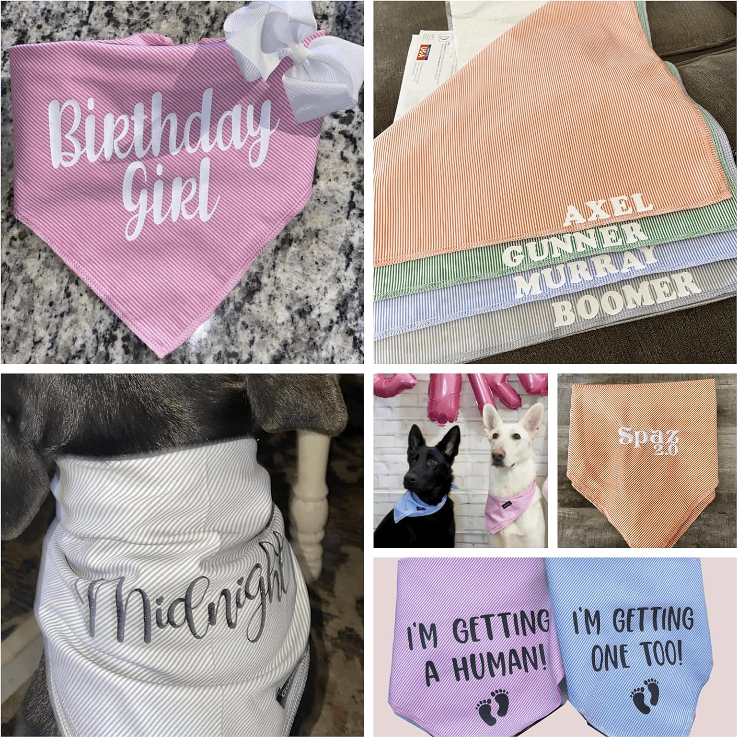 - Personalized Bandanas as Gift: Heat press or embroidered dog name, a unique and pretty bandanas for your pet, what an interesting surprise! This pinstripe handkerchief worked well with heat press!