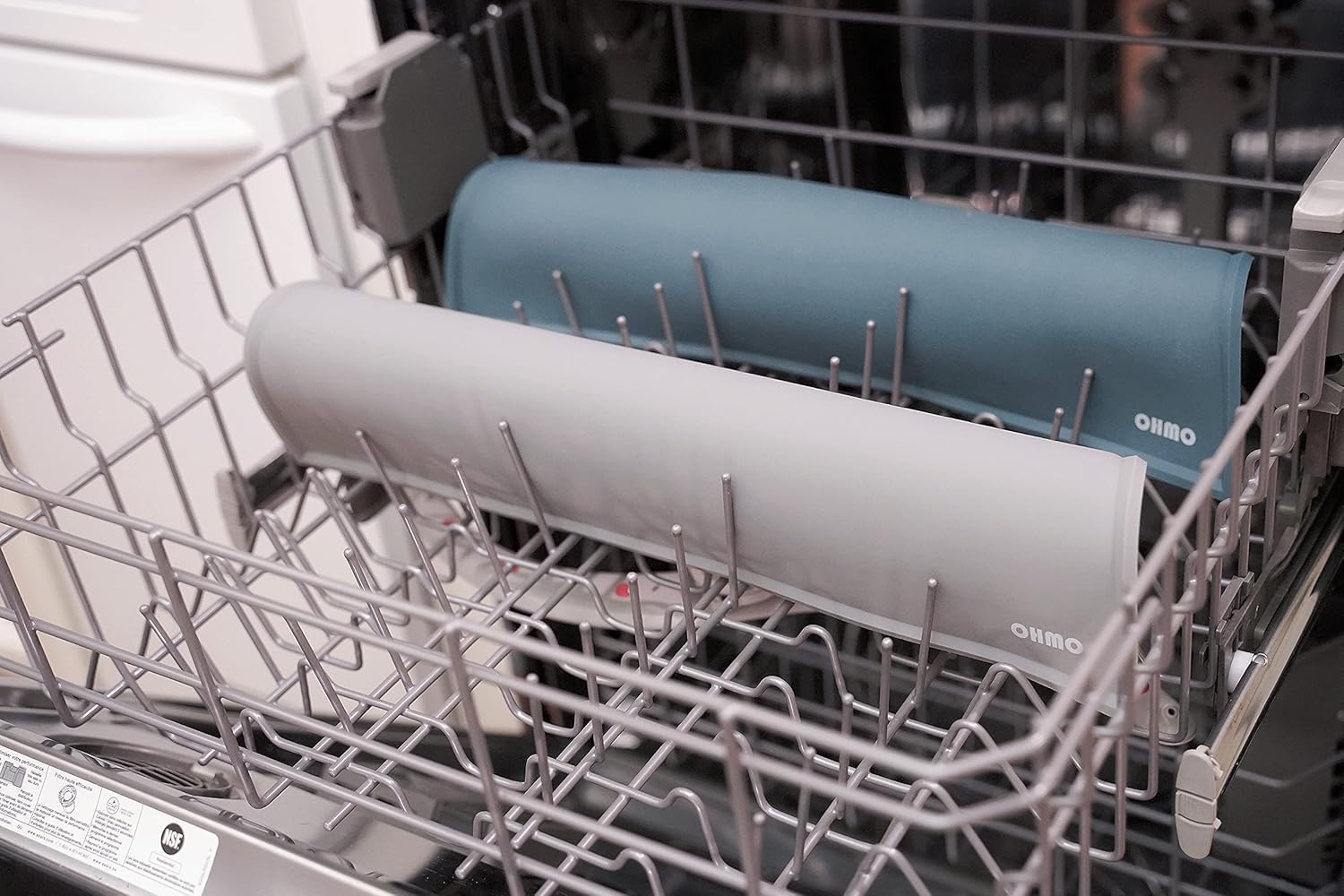 OHMO - Cat Food Mat, Silicone Pet Feeding Mat for Floor Non-Skid Waterproof Dog Water Bowl Tray, Easy to Clean Pet Placemat (Dark Grey, 18 * 9.8'')