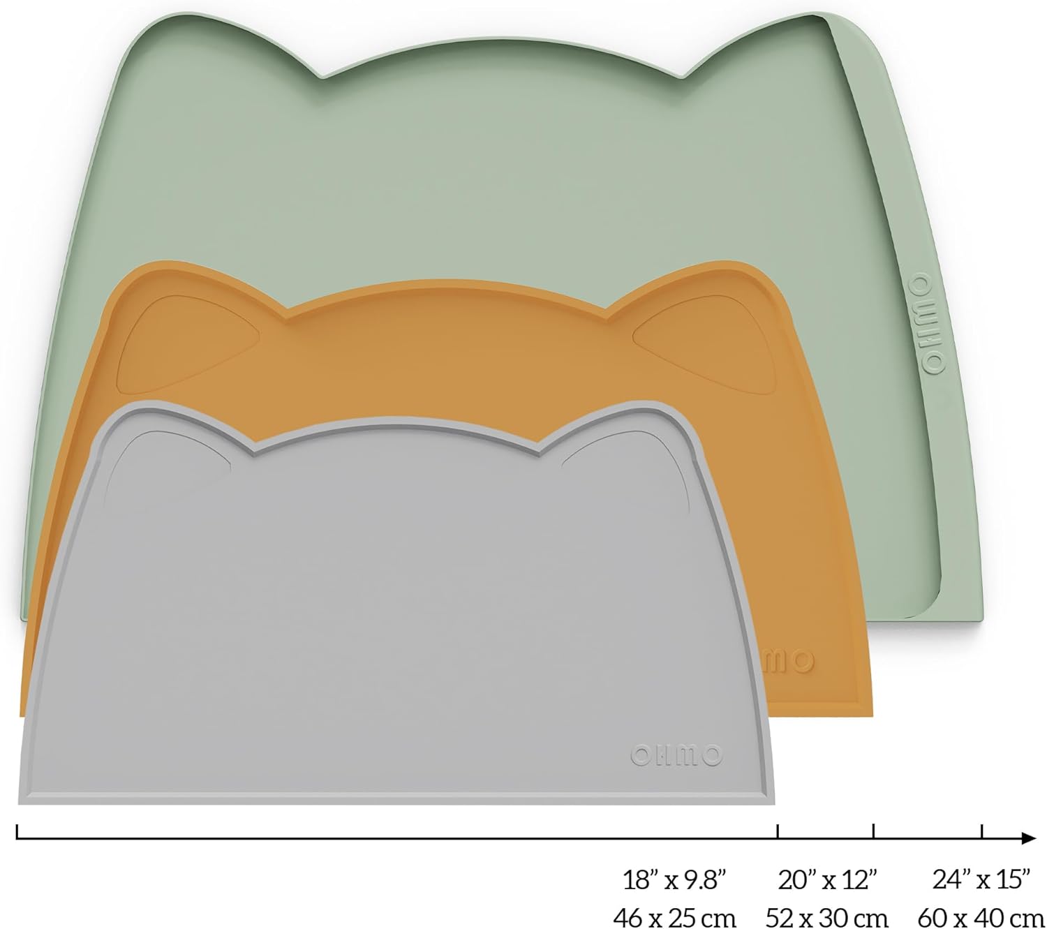 OHMO - Cat Food Mat, Silicone Pet Feeding Mat for Floor Non-Skid Waterproof Dog Water Bowl Tray, Easy to Clean Pet Placemat (Ash, 18 * 9.8'')
