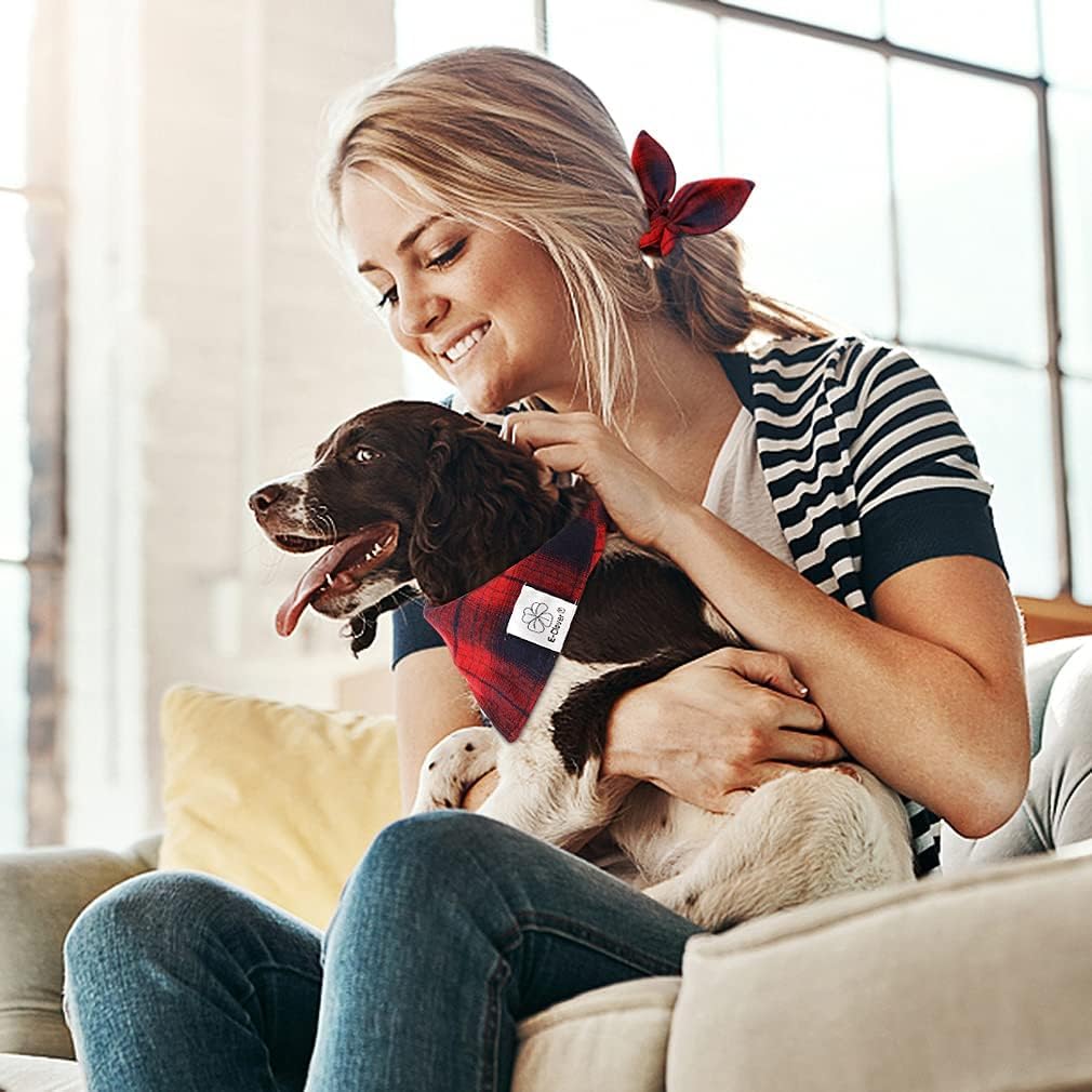 - Matching Dog and Owner Clothes - It’s full of love when your pets is wearing the buffalo dog bandanas and you are wearing the bow scrunchies. When traveling, sleeping, taking photos or daily walking, adorable dog scarf and plaid scrunchie is a pretty accessories. The scrunchie can be worn as a wrist accessory and hold your hair. Beautiful dog drool bibs and bow scrunchie with red plaid pattern, it’s nice photo props.