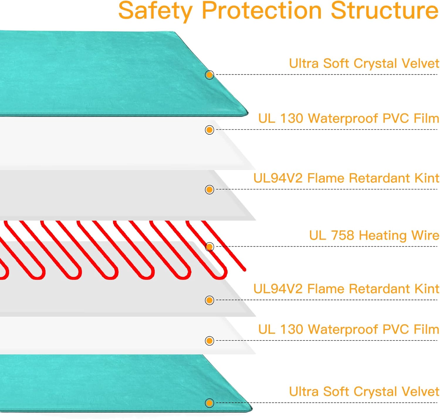 - ❤【Safety and Secure Structure】7-layer protective structure with UL-certified heating wire protect pets from burns. Soft PVC envelope with waterproof and flame-retardant function. Built-in intelligent temperature sensor in the heating pad to prevent overheating to protect pets. Don’t let your pets lay on the pet heating pad without a plush cover.