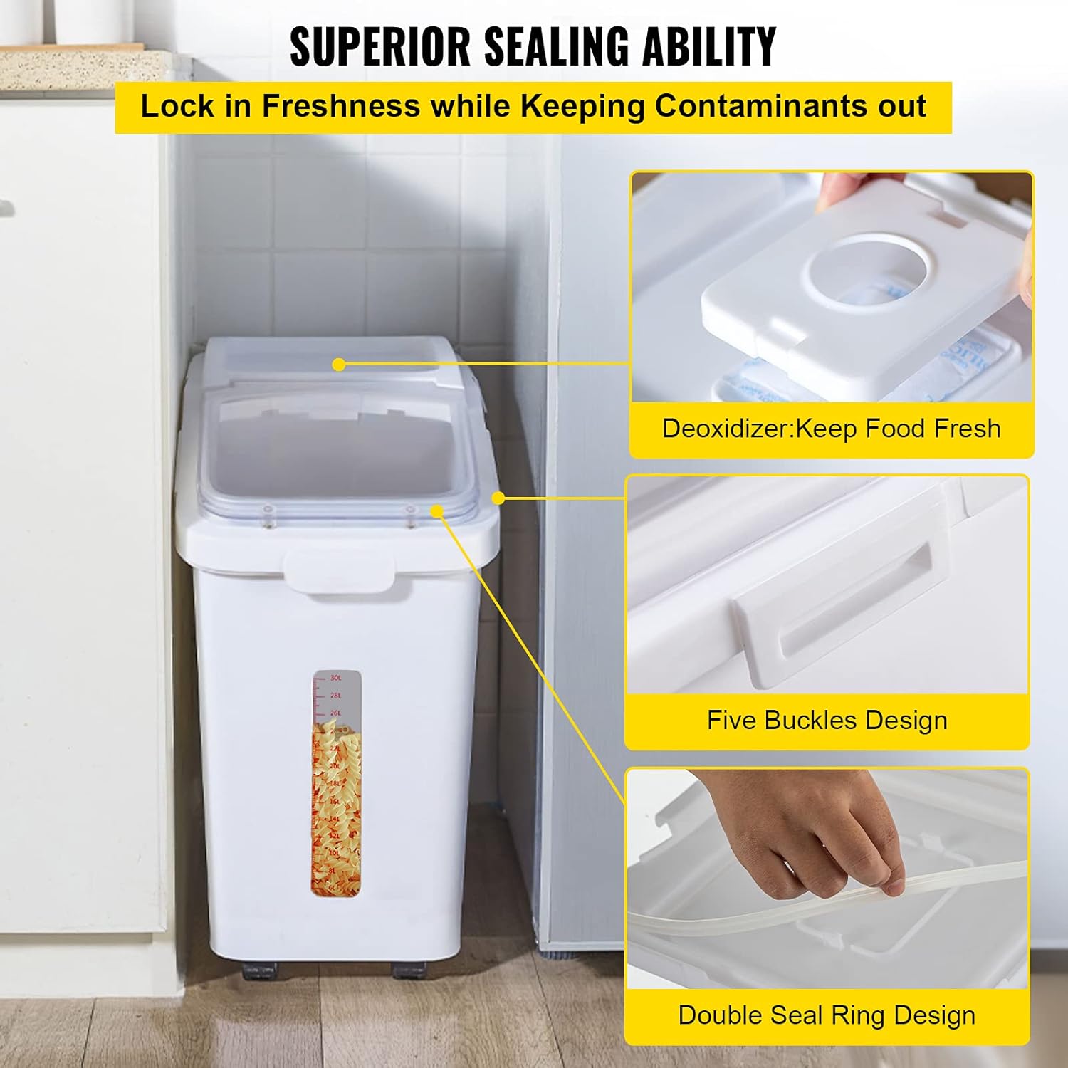 VEVOR Ingredient Storage Bin, 11.4 Gallon Capacity Shelf Ingredient Bin, 280 Cup Flour Bins on Wheels Commercial Prosave Shelf-storage Ingredient Bin with Lid and Scoop Rice Bin for Kitchen White