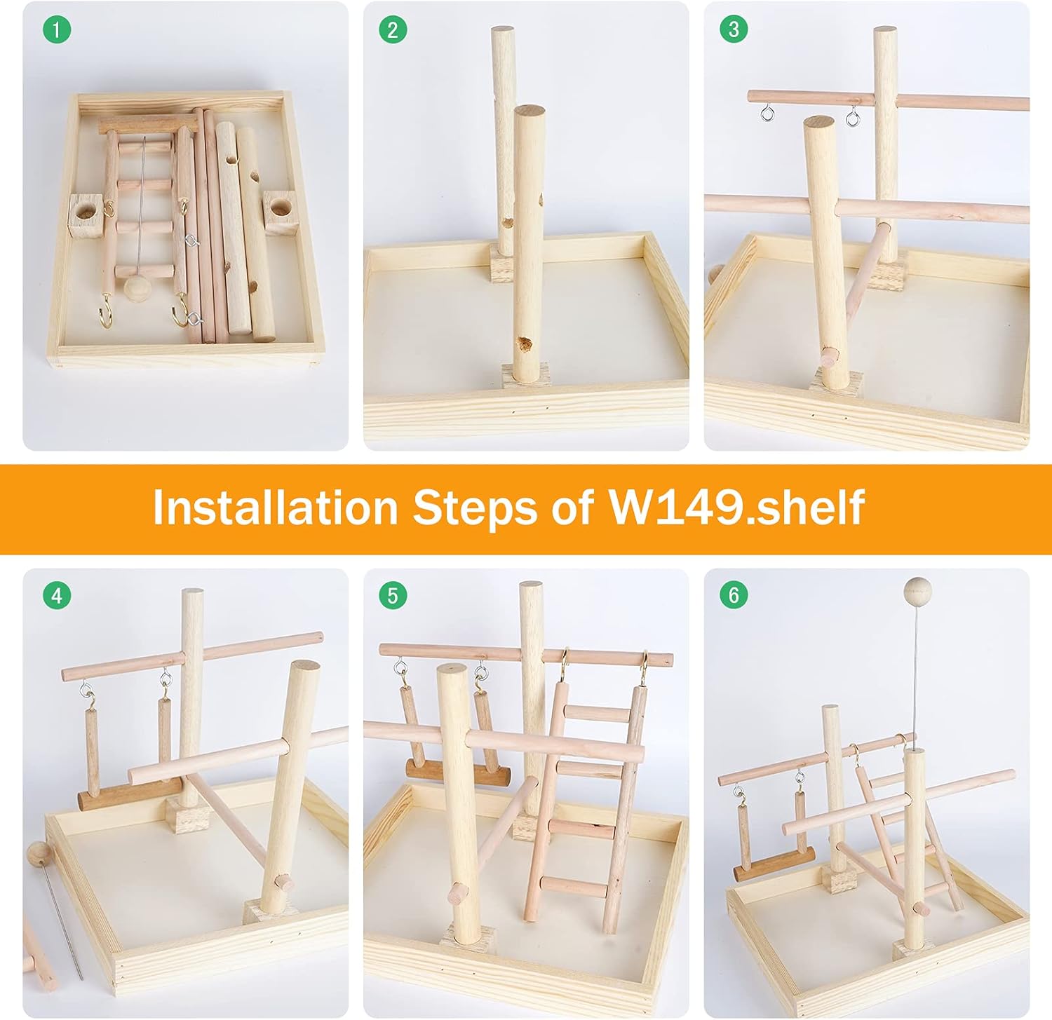 - 【Easy to clean】Wood stand smooth surface. Large tray at bottom of perch can catches food and seeds make clean up quick and easy. NOTE : You will receive the product parts, please assemble the bird stand by yourself.