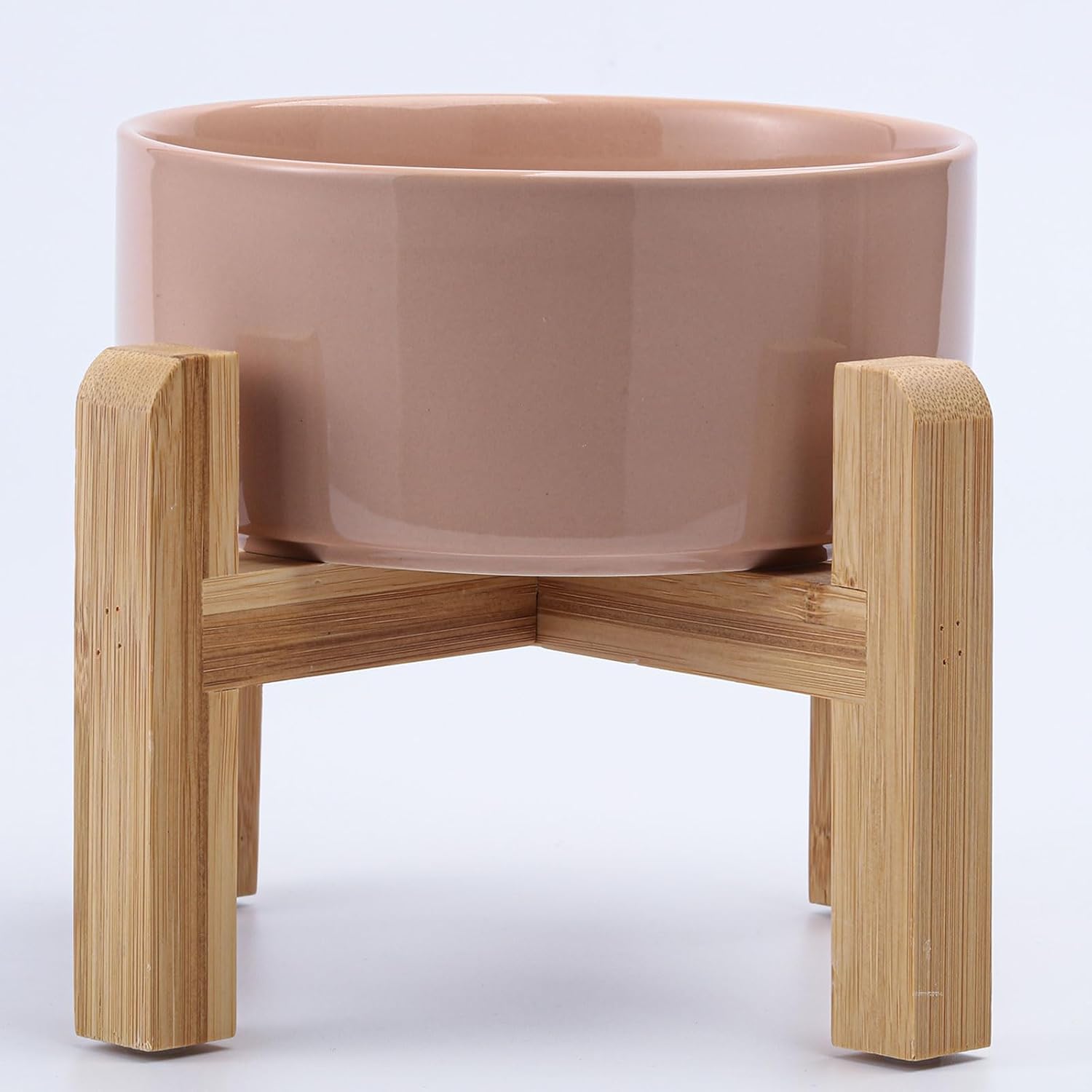 - NON SLIP WOOD STAND -You can get two different heights by flipping the bamboo stand,the elevated ceramic medium size pet bowls are perfect for small and medium dogs from different stages of childhood to adulthood, The wood stand on the bowls stopping ceramic dog bowl from sliding around, Keeps pet food and water in the bowls.