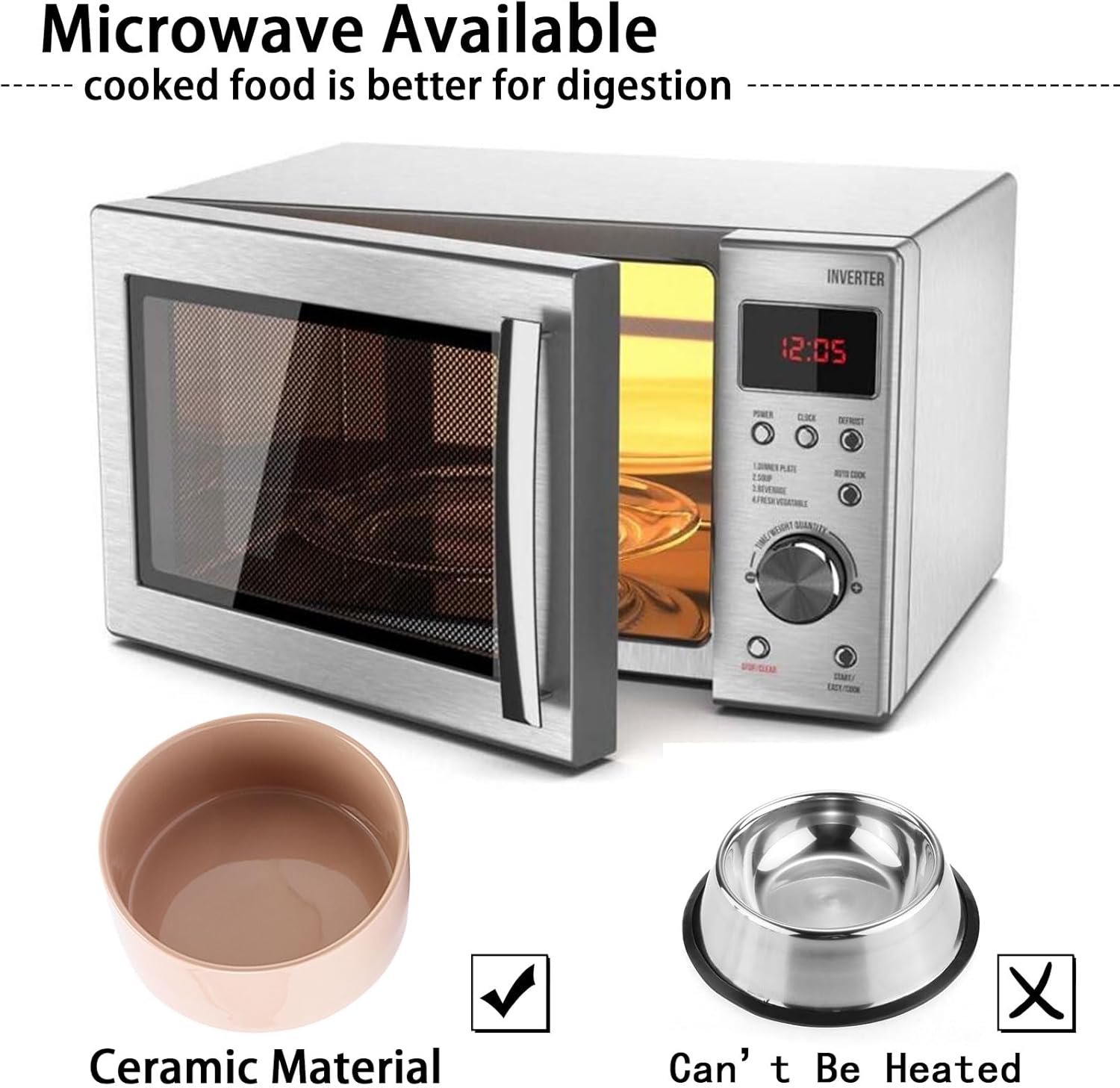 - Easy to Clean and Microwave Safe Ceramic Material - Cute ceramic dogs cats bowl with WOOD STAND design matches the home decorations. Ceramic bowl is made of Porcelain, this small sized dog food water bowls are free of lead and cadmium. High temperature ceramic, durable, conveniently dishwasher Microwave safe so this ceramic food bowl can be easily cleaned. No Fuss.
