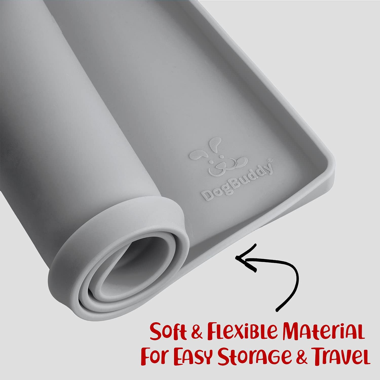 - Easy To Use: Smooth surface of DogBuddy Dog Food Mat is better at preventing dog bowls from sliding due to a stronger contact with the bowl. The mat can be rolled up for storage.