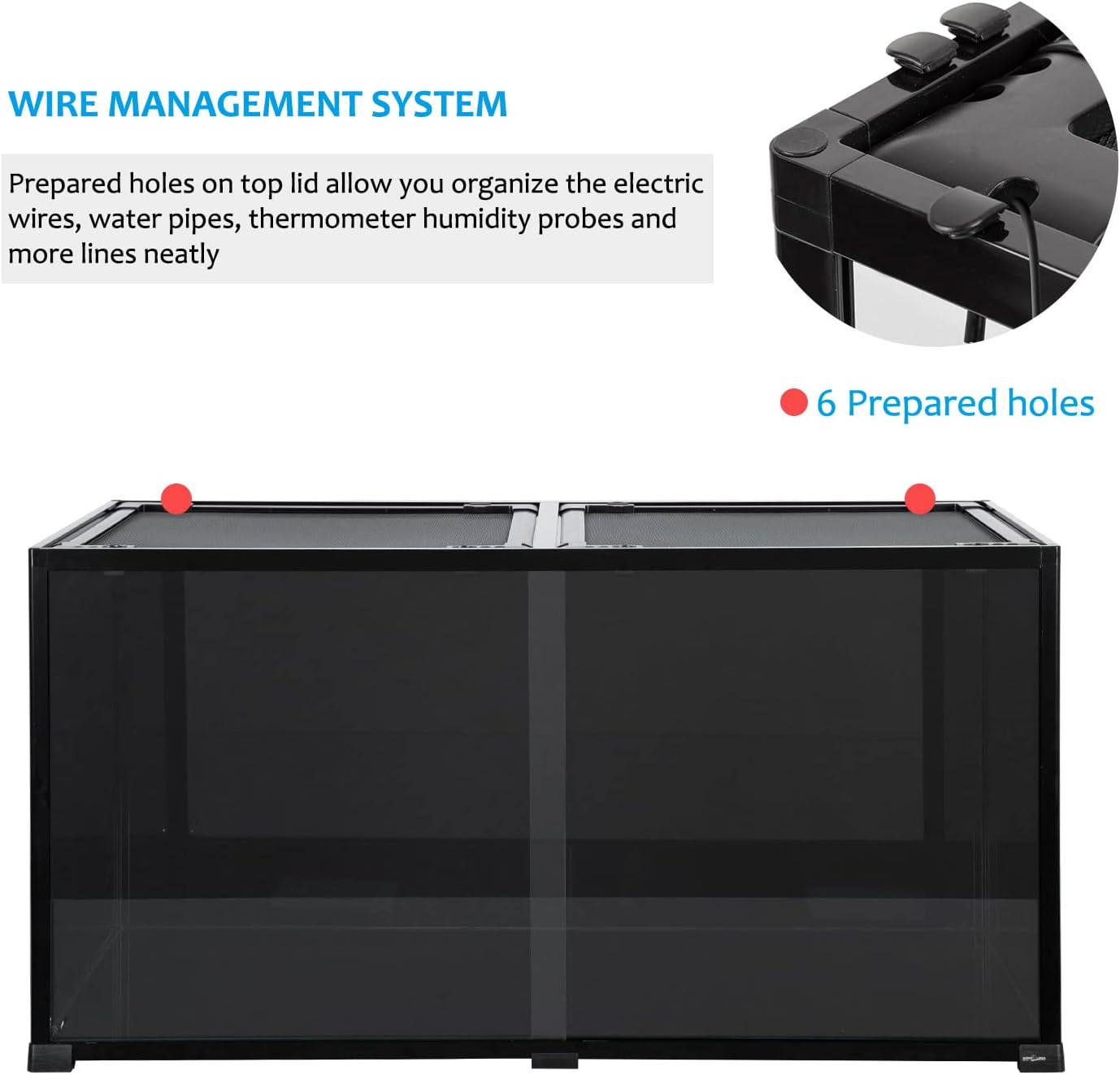 - ă270° Full View Glass TankăThis 3 sides glass of the 120 gallon reptile tank is transparent, allows you to watch and interact with your pets easily.