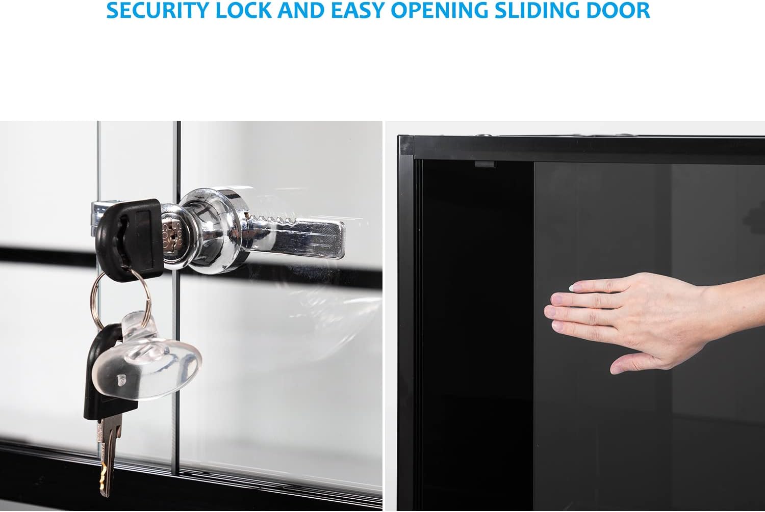 - ăAnti EscapeăSecurity buckle on the lid ensure the tank closed tightly, prevent your reptile amphibian chameleon pets from escaping. And the security lock avoid the doors open accidently by your kids and keep your kids safe.