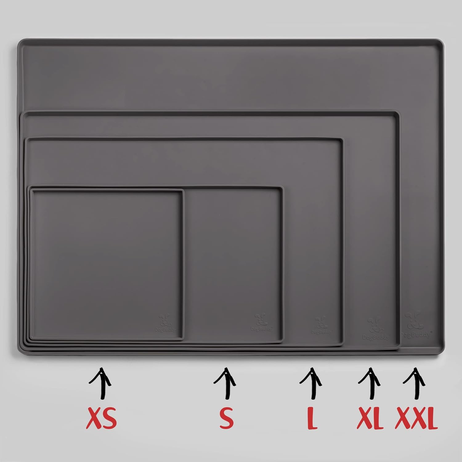 DogBuddy Dog Food Mat – Waterproof Dog Bowl Mat for Food and Water, Silicone Pet Feeding Mats For Floors, Non-Slip Placemat with High Edges For Dogs Bowls, Puppy Essentials (XS: 11" x 11", Shadow