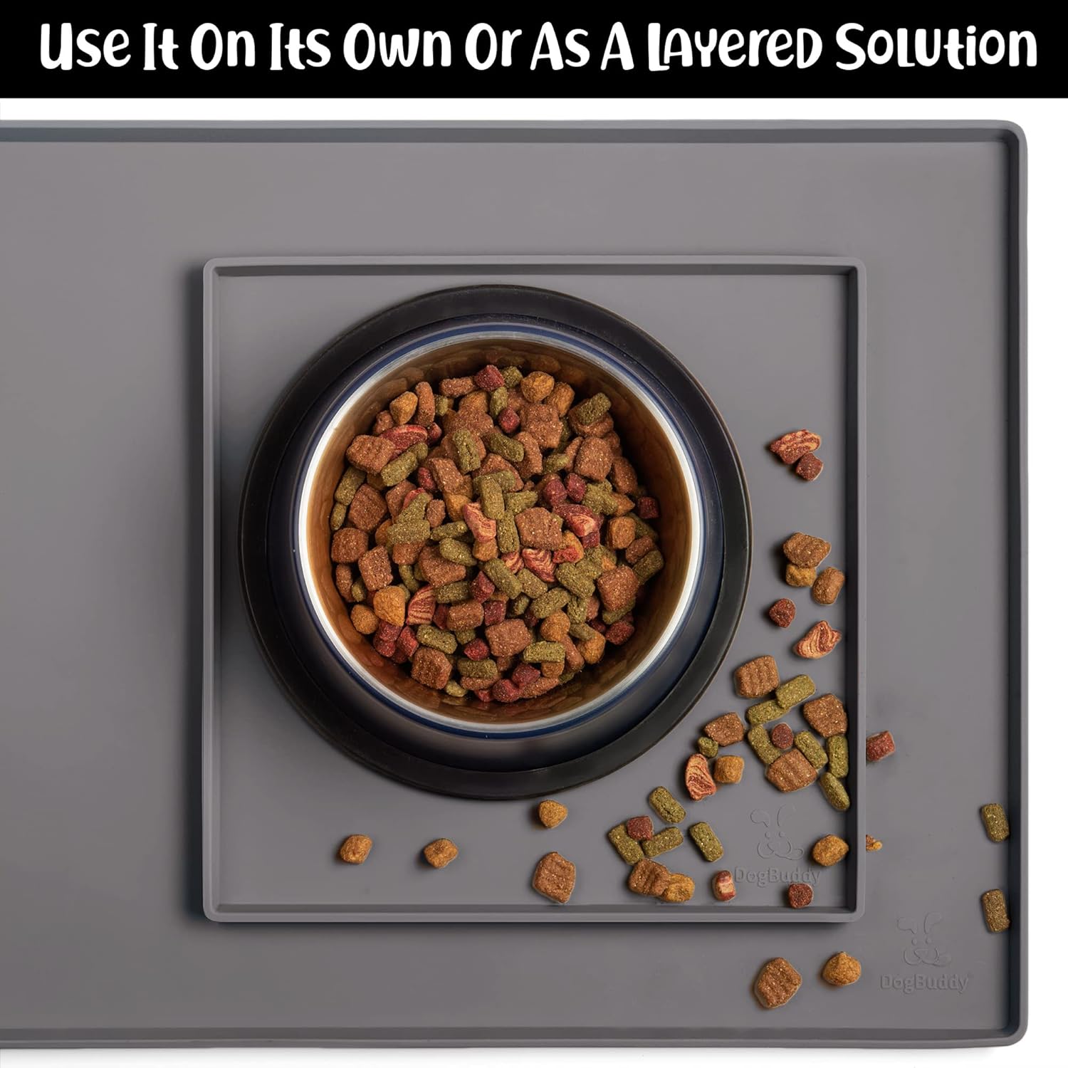- For All Pets & All Food Bowls: DogBuddy is your pet’s buddy! Our food mat can be used for all house pets – dogs, cats, and other small animals. Use this food mat under dog and cat bowls, water fountain, automatic feeder etc. It is pet supplies must have!