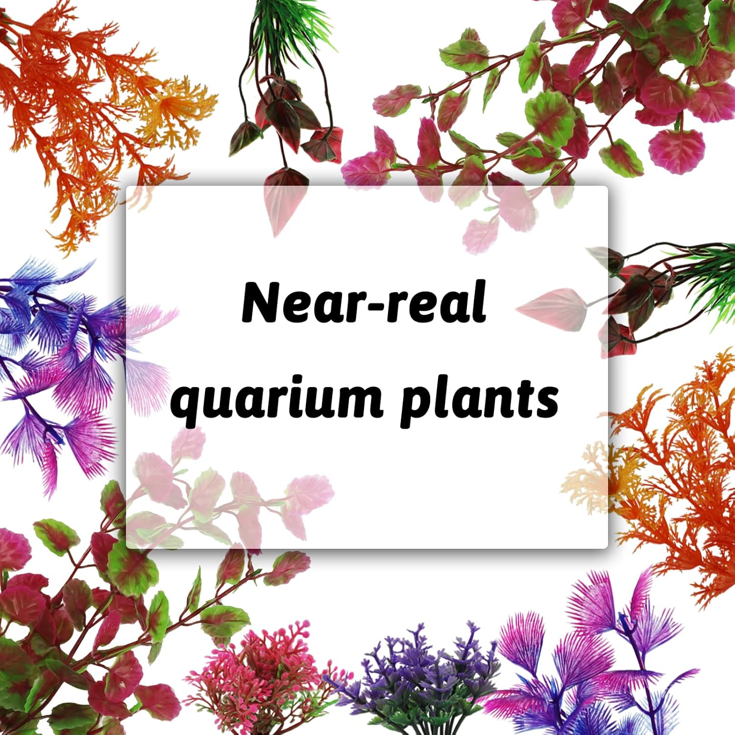 - Colorful Aquarium Decorations: 10 Pieces different styles aquarium plants: ( 2 - 4.9 inch small plants and 2pcs large plants: 7.9inch. including purple, red and orange ).